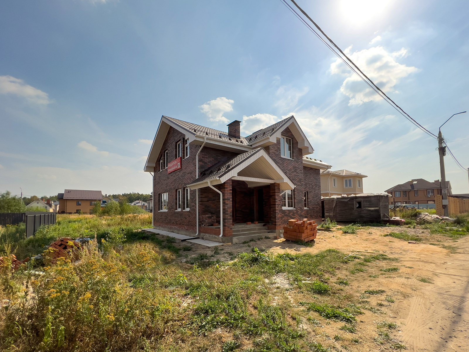 В дом заведен: водопровод, канализация, электричество, магистральный газ. В доме установлены перегородки.