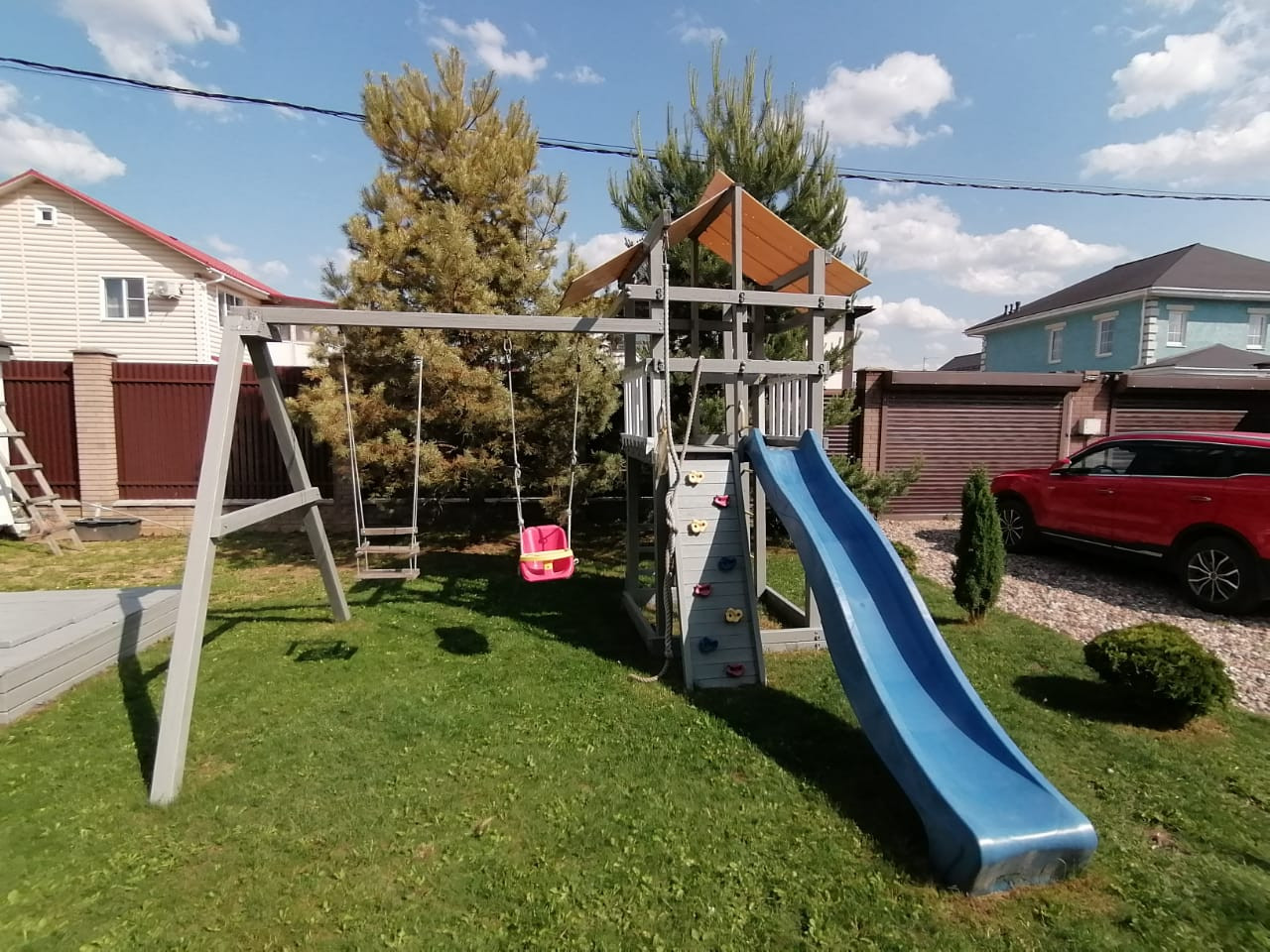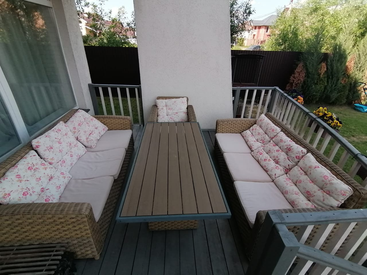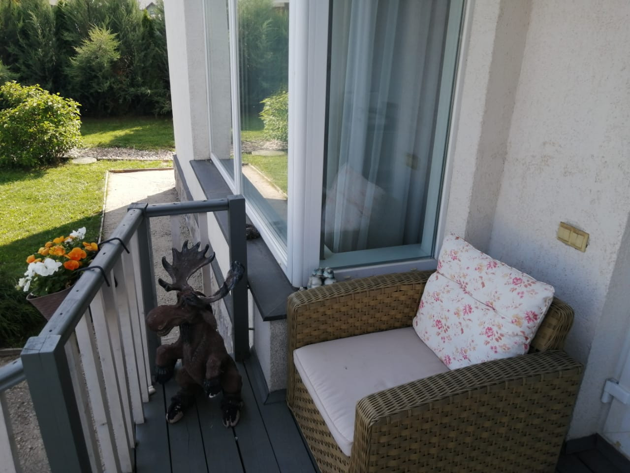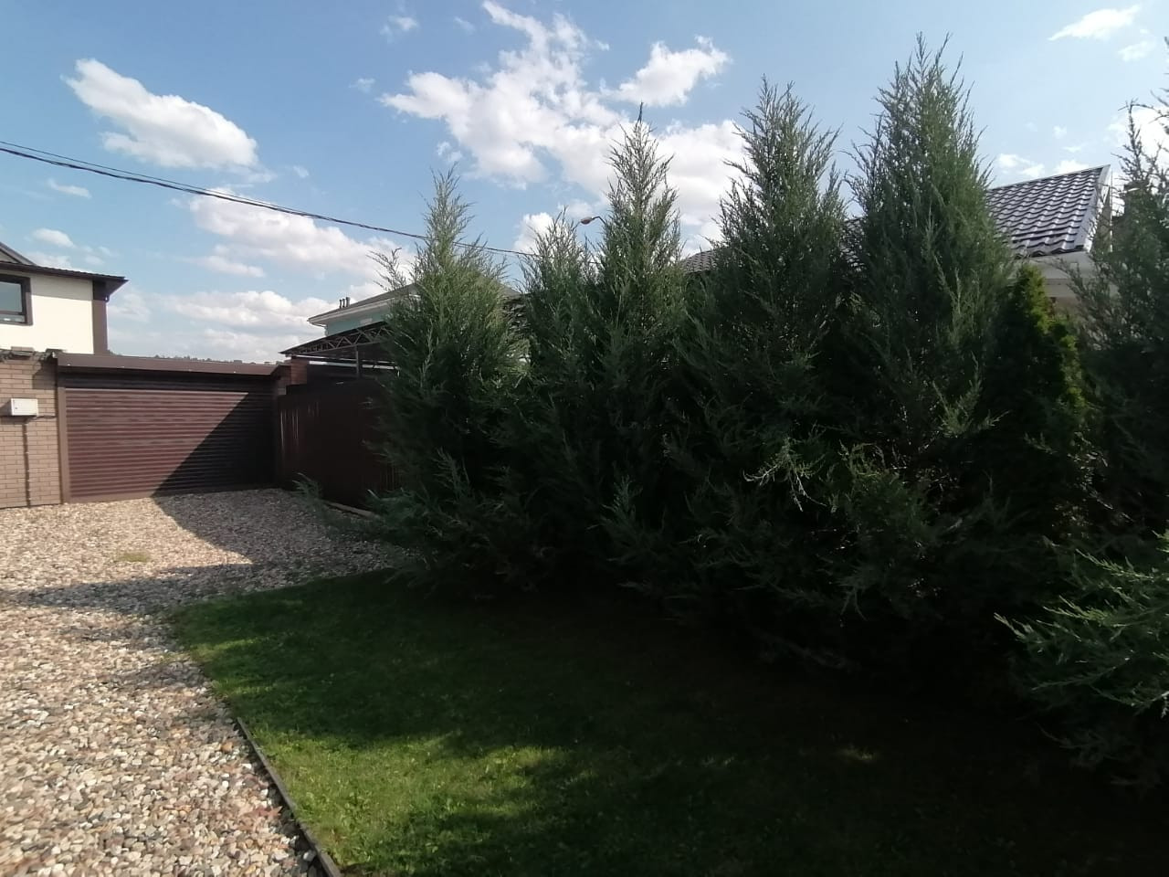 - Дом построен в 2015 году и находится в центре посёлка вдали от шума трассы. Очень тёплый зимой и прохладный в жару. Все коммуникации центральные, в доме газ, электричество (15 кВт), вода, интернет и ТВ, возможна прописка. На первом этаже по всему полу проложен теплый пол, находится холл, туалет, постирочная, бойлерная и кухня-гостиная в одном пространстве. На втором этаже: холл, 3 спальни, гардеробная, две ванные комнаты. По вашему желанию оставим всю бытовую технику и мебель. Участок ровный, с ухоженным газоном и цветочными клумбами, стоит бытовка и есть детская горка с качелями и песочницей, высажены туи, ели и плодовые деревья (яблони, черешни и груши). Стоянка на 2 машины с подъемными воротами.
