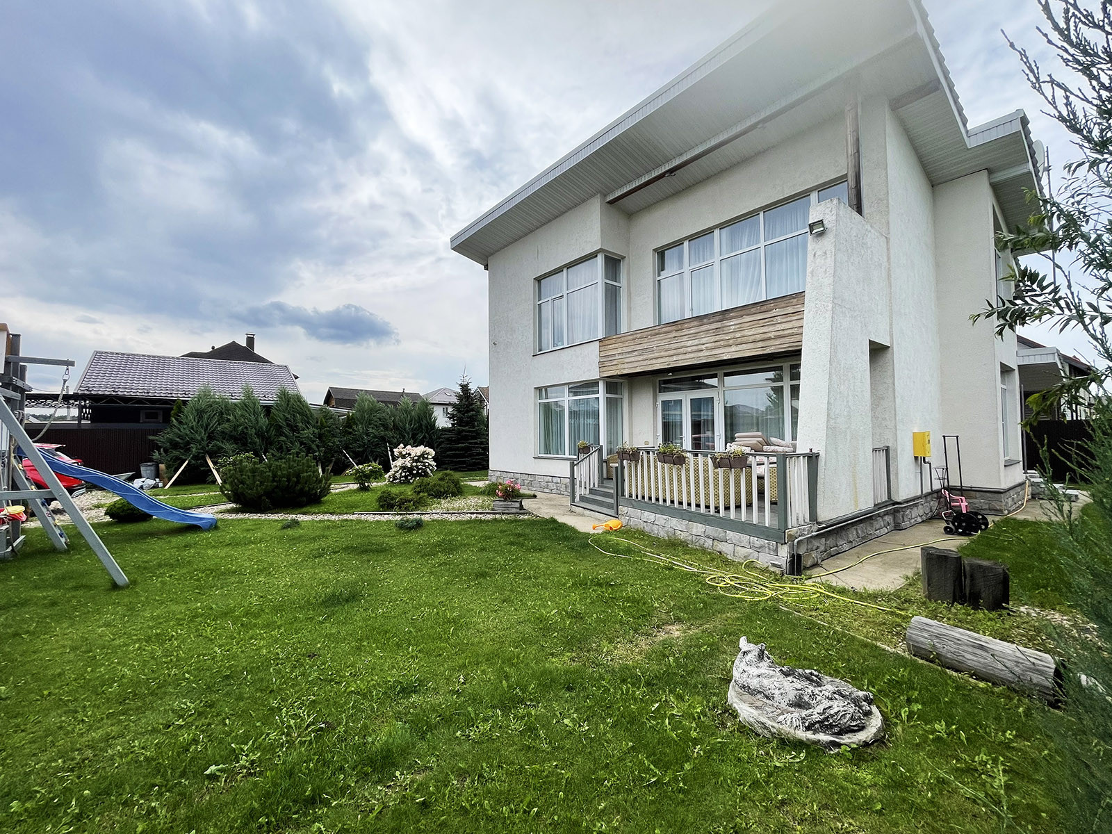 Коттедж оборудован всей необходимой техникой и мебелью. Газ, вода, электричество и канализация все центральные и заведены в коттедж. У коттеджа прекрасная, ухоженная придомовая территория с детской площадкой, 2 парковочными местами. Рядом с коттеджем расположен лес.