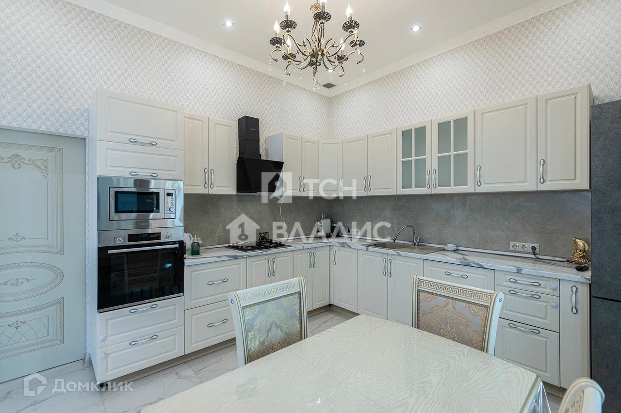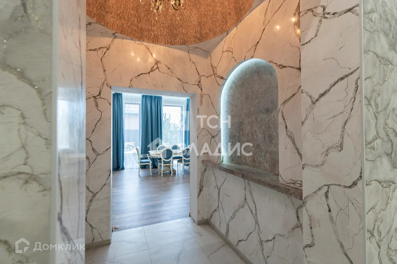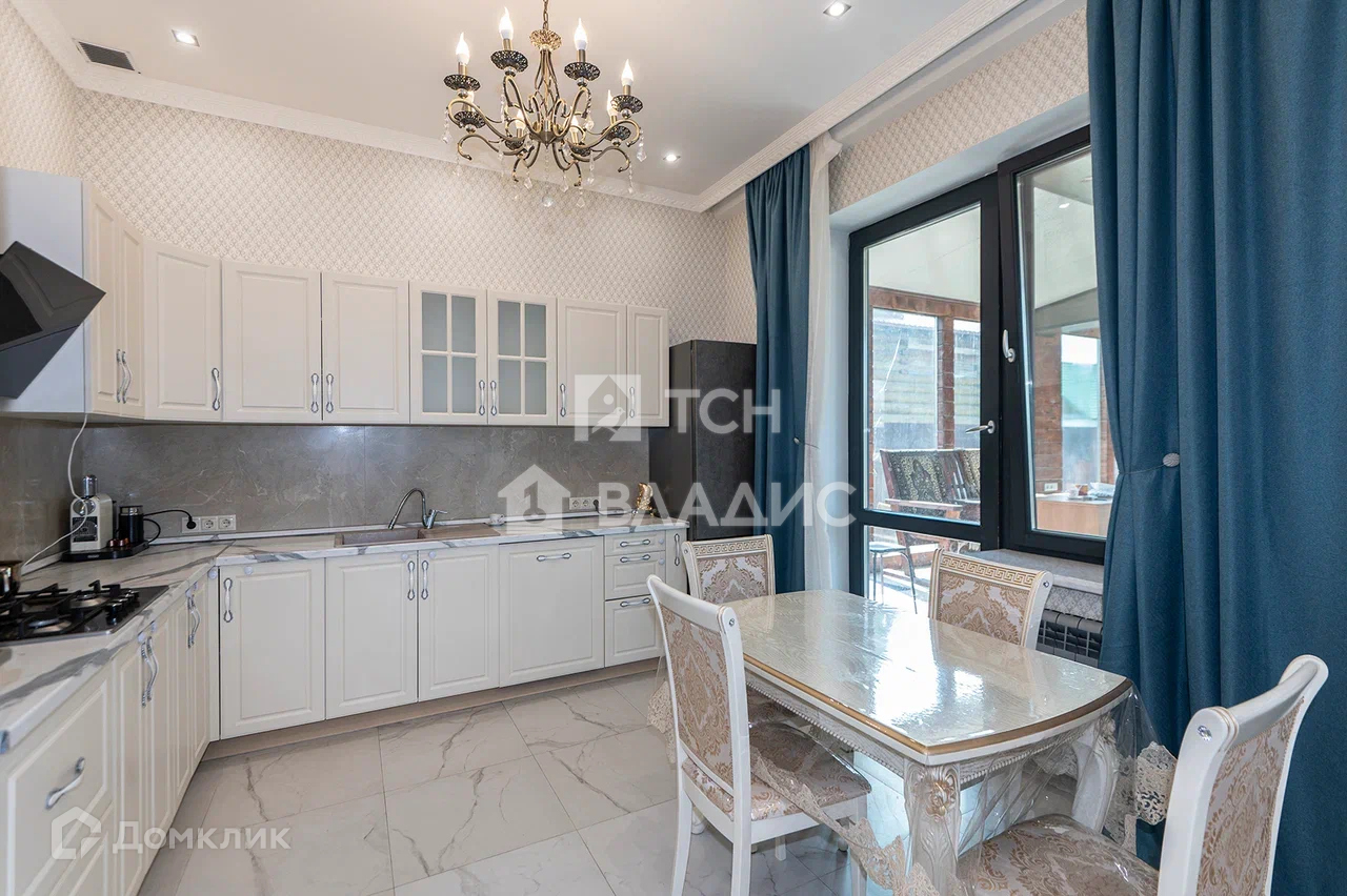 Дом построен из газоблока, снаружи облицован натуральным камнем. Панорамное остекление. Крыша покрыта металлочерепицей. В доме выполнен качественный ремонт. Теплый пол.