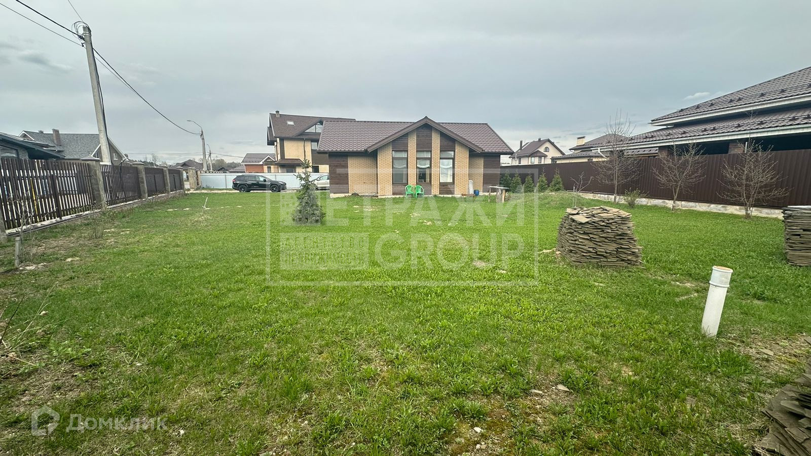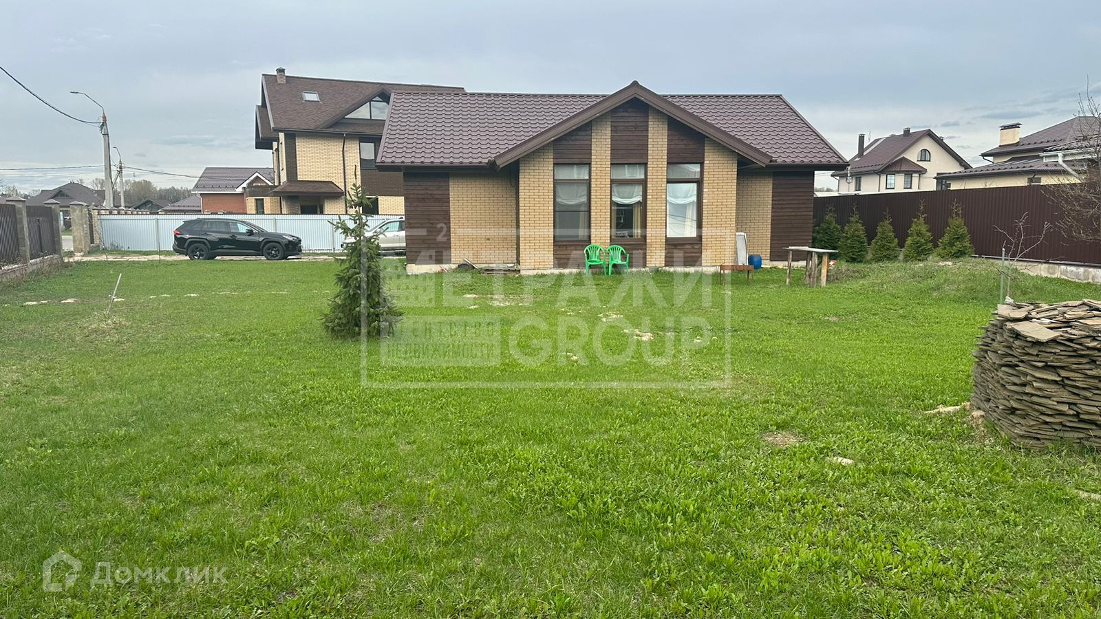 Бонусом готовый ландшафтный проект, некоторые деревья и растения уже высажены. Для реализации проекта полностью, закуплен и лежит на участке плитняк (дорожки, цоколь, отмостка, въезд). Забор установлен, все в общем стиле дома.