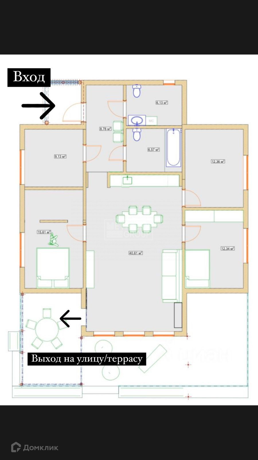 - кухня/гостиная с выходом на предполагаемую террасу, либо просто улицу 40,61