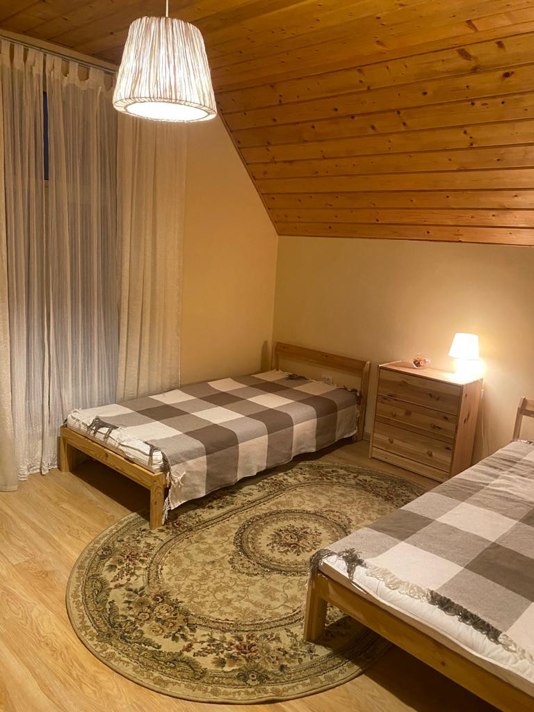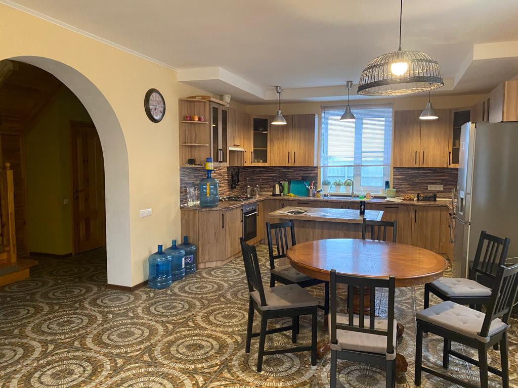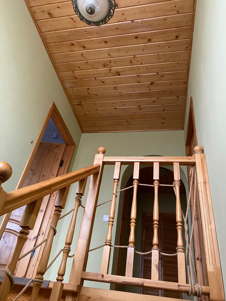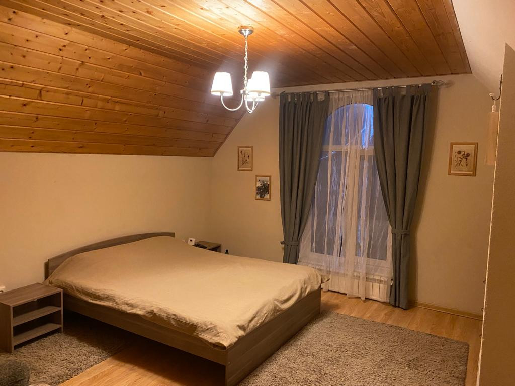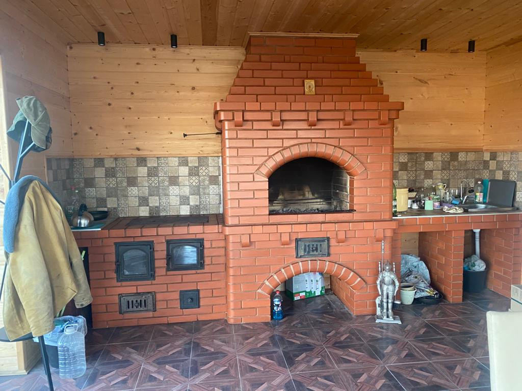 30 кв.м., окна в пол, кирпичная печь и мангальная. Лестница на смотровую площадку, где открывается вид на лес, поля и весь поселок.