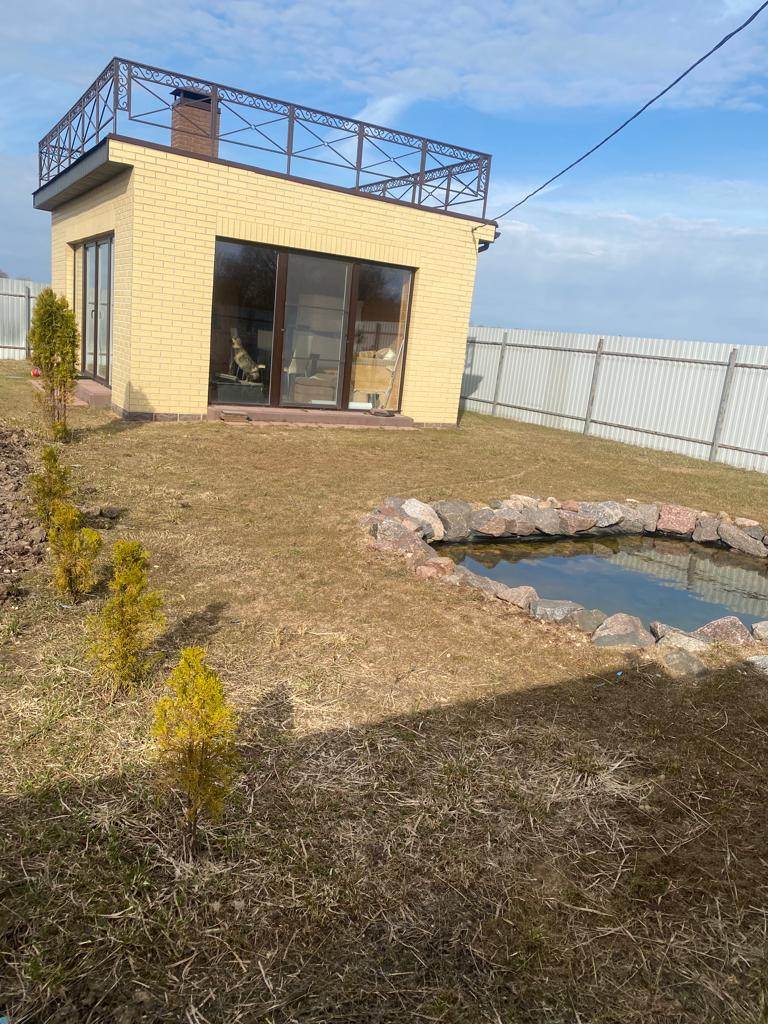 Забор вокруг всего участка, есть парник, летняя беседка, погреб 4 кв.м, садово ягодные кустарники и водоем.