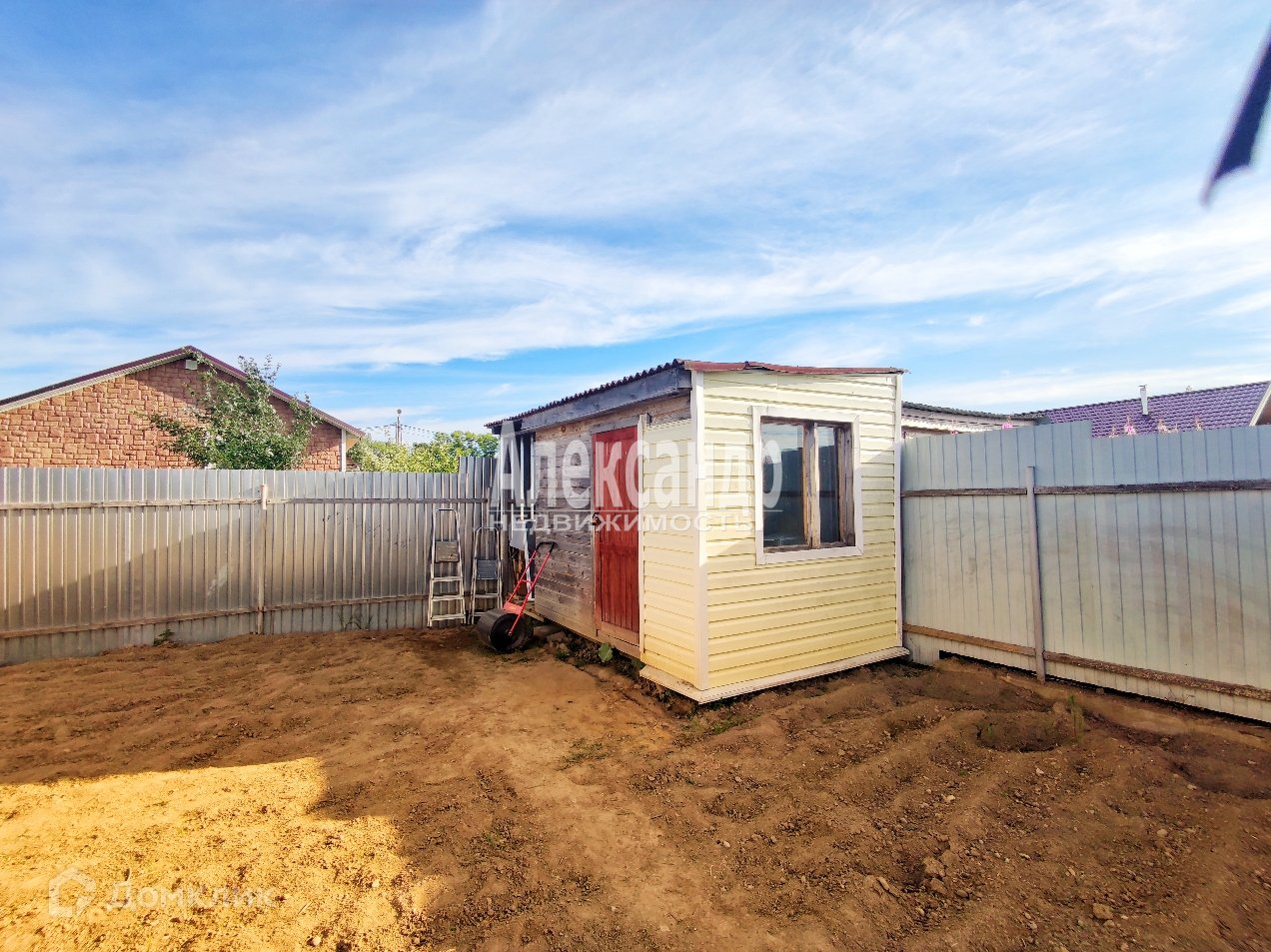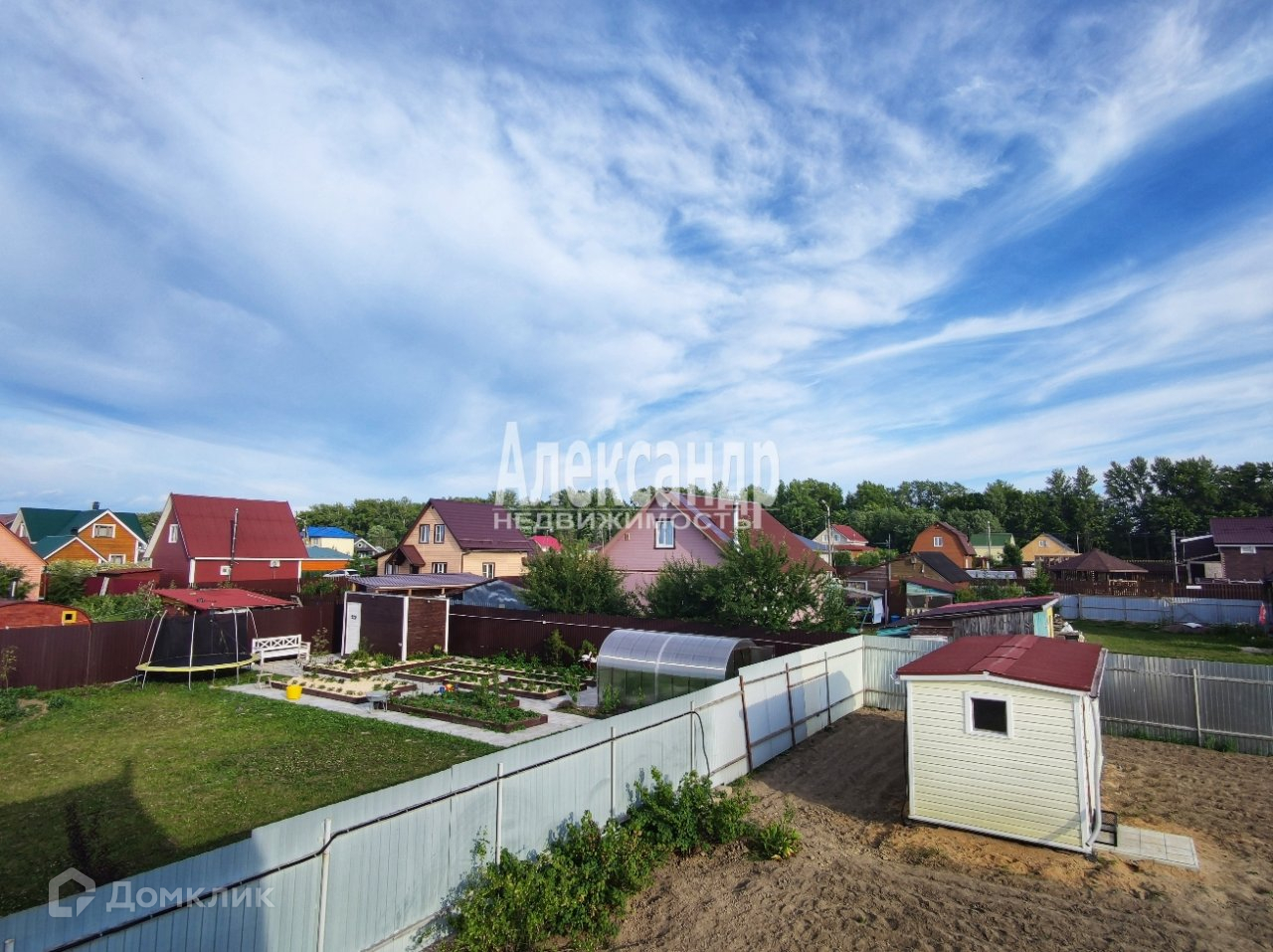 Участок 7 соток, сухой и ровный, дренаж по периметру. Участок со всех сторон огорожен (профлист), ворота, калитка, отсыпана площадка для парковки. На участке — плодоносящие яблони, кустарники красной, черной, белой смородины и крыжовника, декоративные туи.