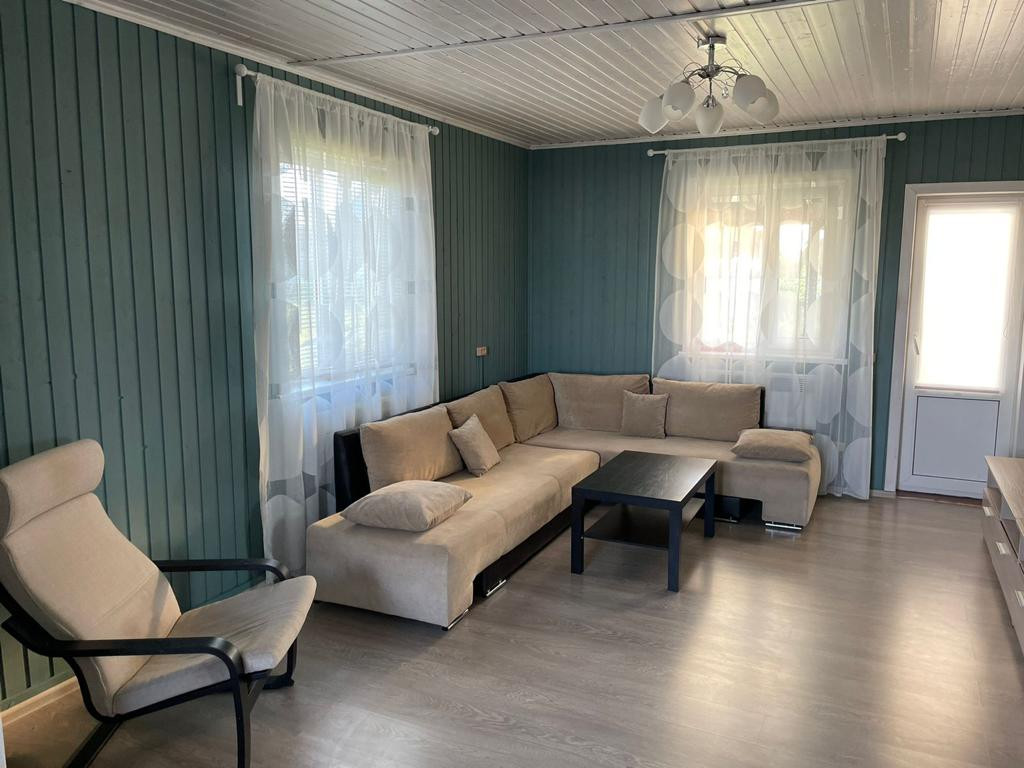 Каркасный дом на свайном фундаменте, удобная планировка: на первом этаже кухня-гостиная с выходом на зимнюю веранду, гостевая спальня, санузел. На втором этаже три спальни. Отопление дома осуществляется за счет камина и конвекторов. Водоснабжение-собственная скважина. Дом очень теплый и уютный. Идеальный вариант для круглогодичного проживания! По периметру дома сделано видеонаблюдение.