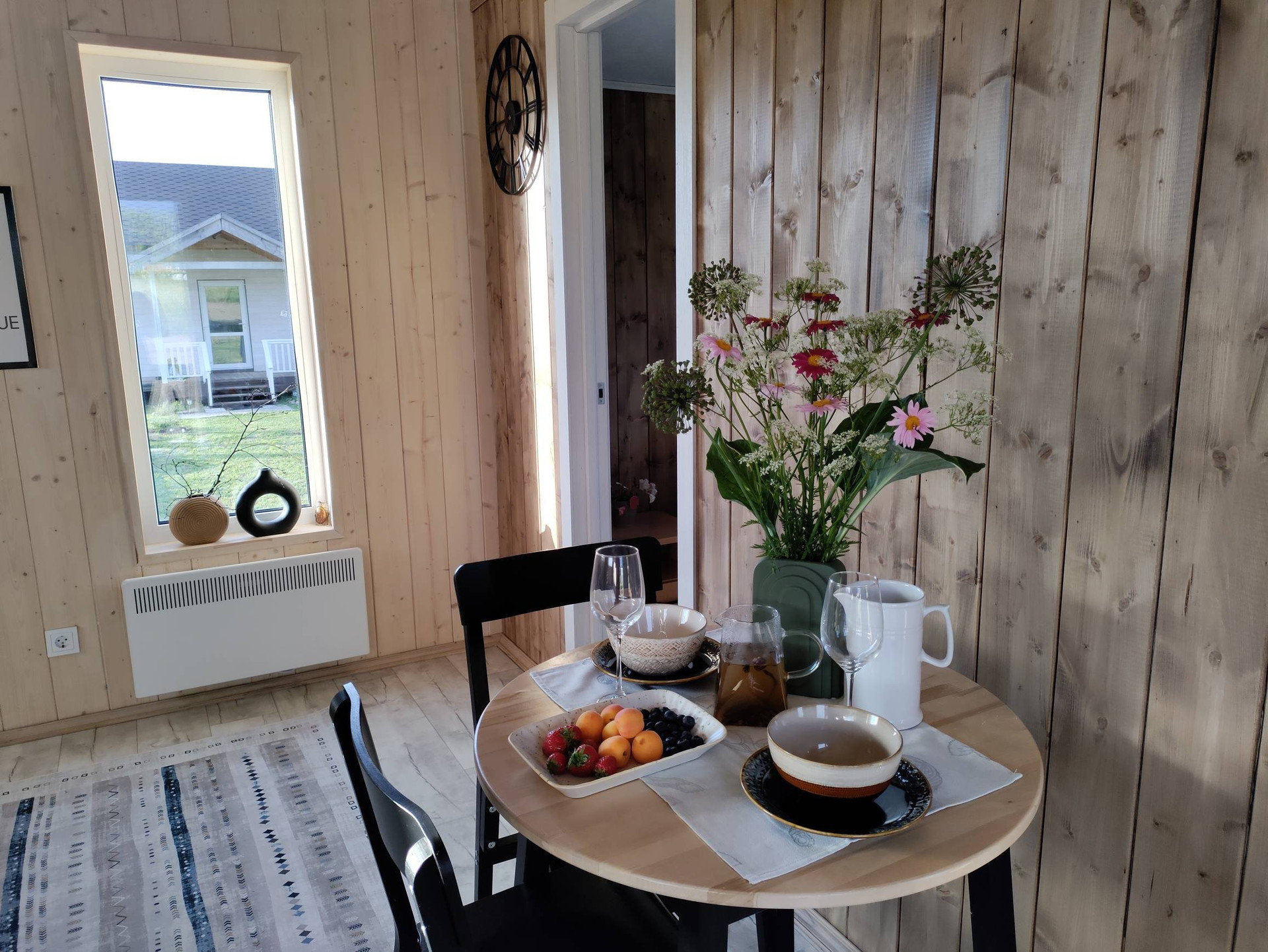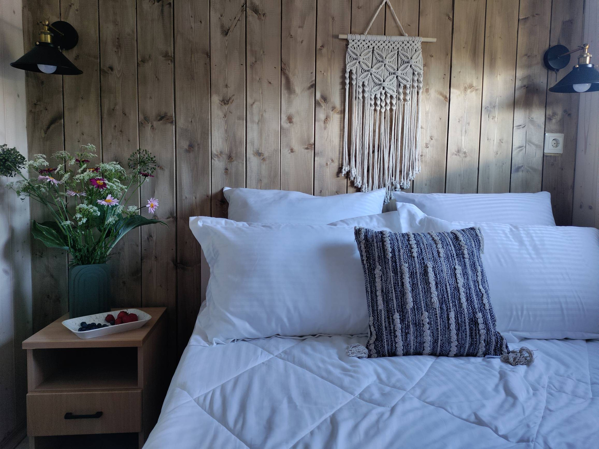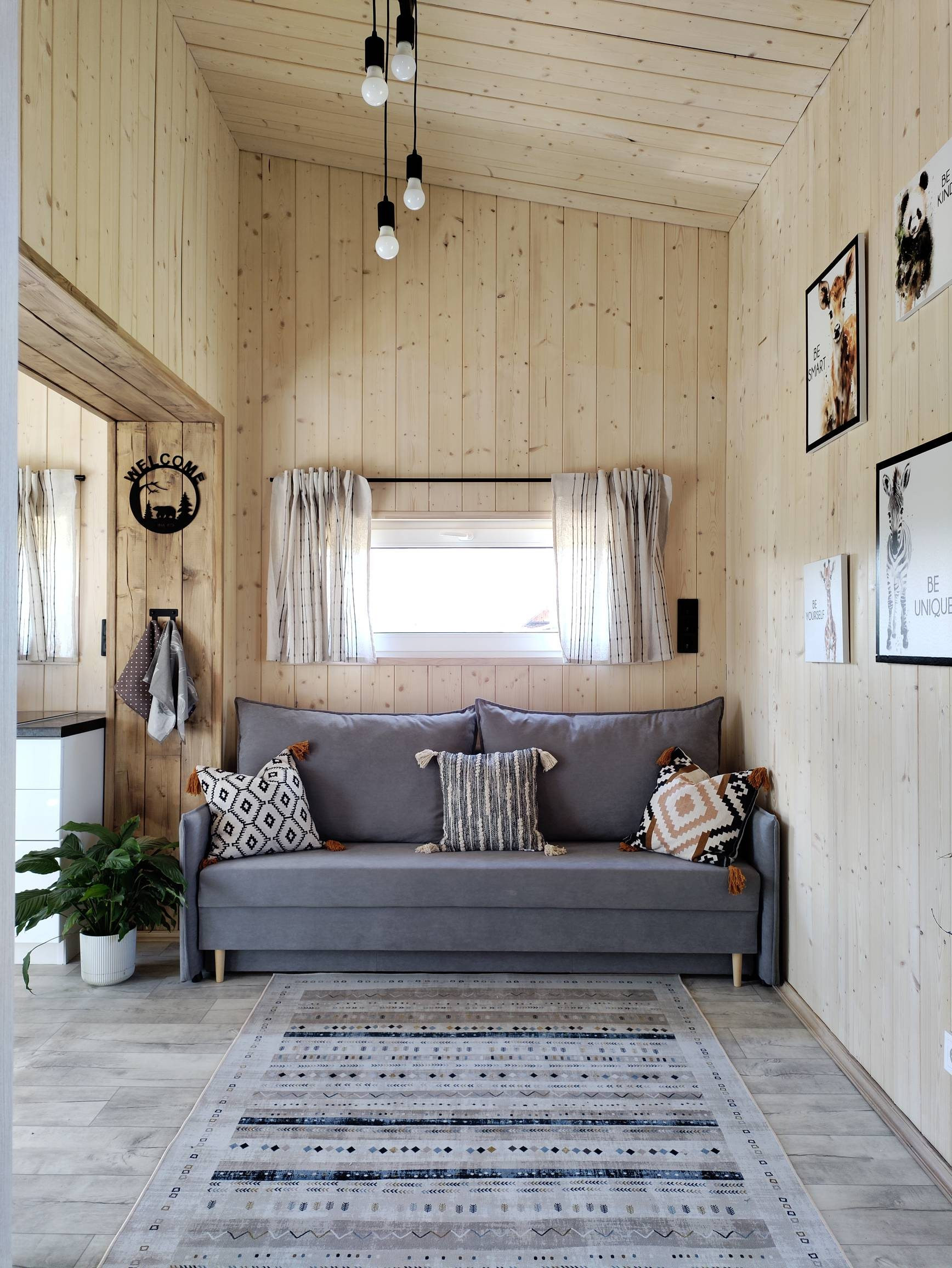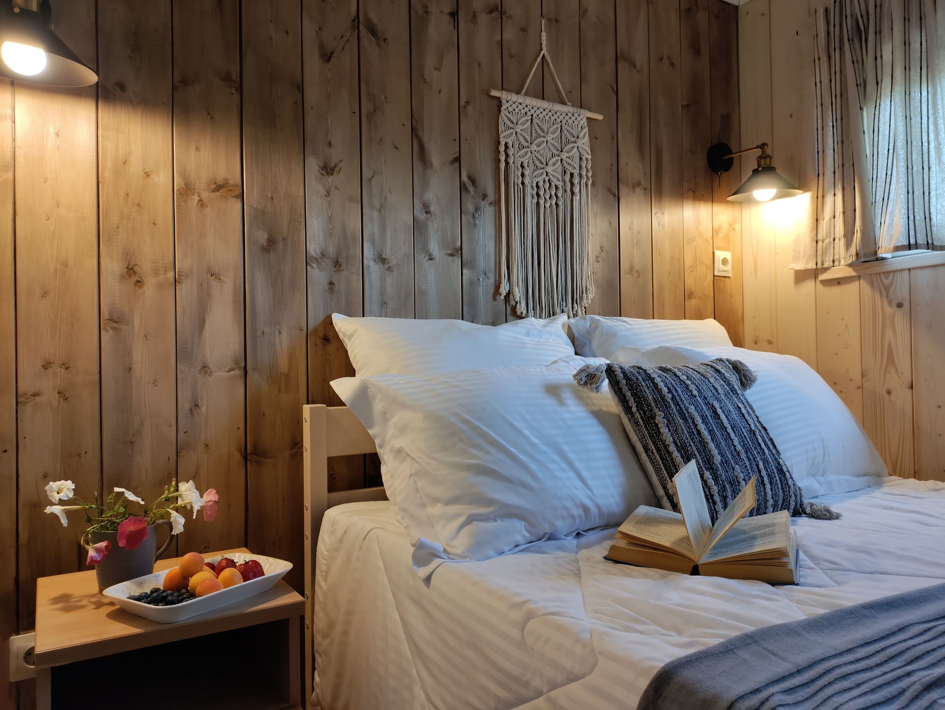Дом при компактных размерах идеально спланирован и вмещает в себя изолированную спальню, просторную кухню-гостиную с высокими потолками до 3,2 метра, тамбур, санузел с душевой кабиной и просторную антресоль, на которой можно расположить дополнительные спальные места или систему хранения. Из гостиной, распахнув панорамные окна, вы попадаете на 15 метровую террасу, с которой открываются потрясающие виды на рассветы и закаты. Дом рассчитан на проживание 4 персон, при желании, в доме можно комфортно разместить до 6 человек!