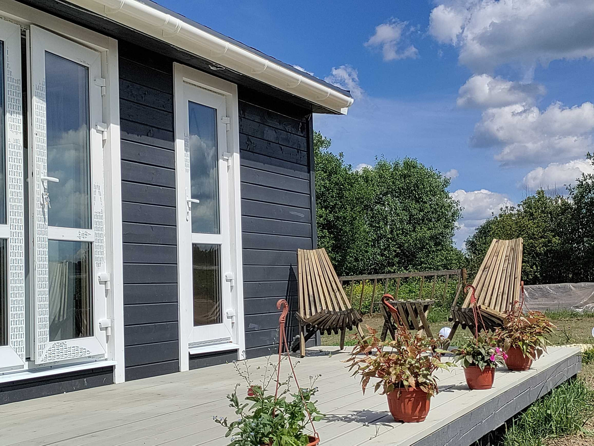 Построен дом по каркасной технологии, утепление: стены 150 мм, пол и перекрытие 200 мм. Добротные двухкамерные стеклопакеты с качественной фурнитурой, внутри дом обшит деревом и окрашен экологичными красками Тиккурила.