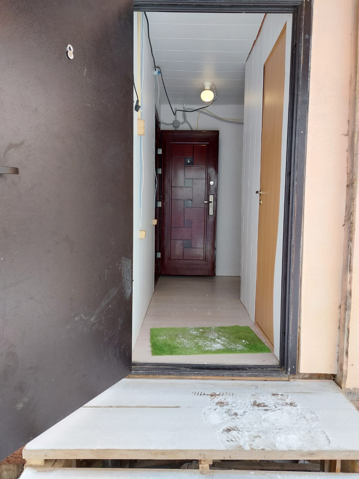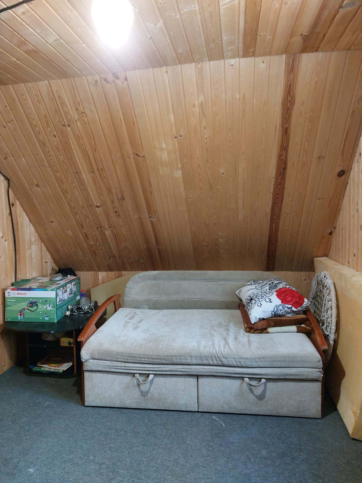 Дом 60 кв, 2 этажа. На первом этаже с/у, душевая кабина, кухня и 2 небольшие отдельные спальни. На втором этаже холл и спальня. Дом каркасный с очень хорошим утеплением (Rockwool 200 мм внутри + пеноплекс 50 мм снаружи под штукатуркой). Отделка внутри: 1 этаж блок-хаус, 2 этаж вагонка, на полу 1 этаж линолеум, 2 этаж - ковролин. Отделка фасада штукатурка, крыша металлочерепица. Свайный фундамент. Окна стеклопакеты.
