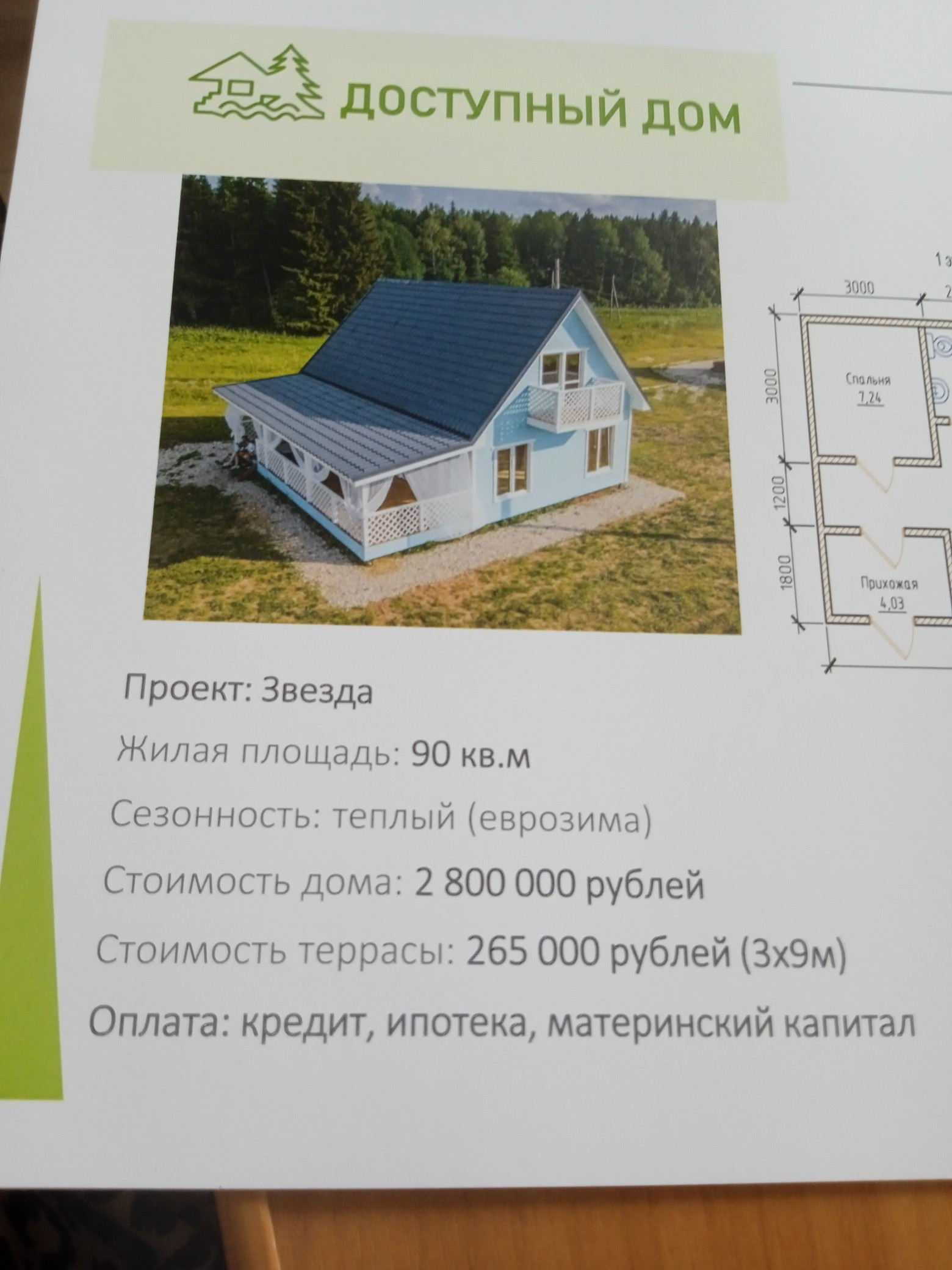 стоимость террасы 265.000 руб (3*9)м