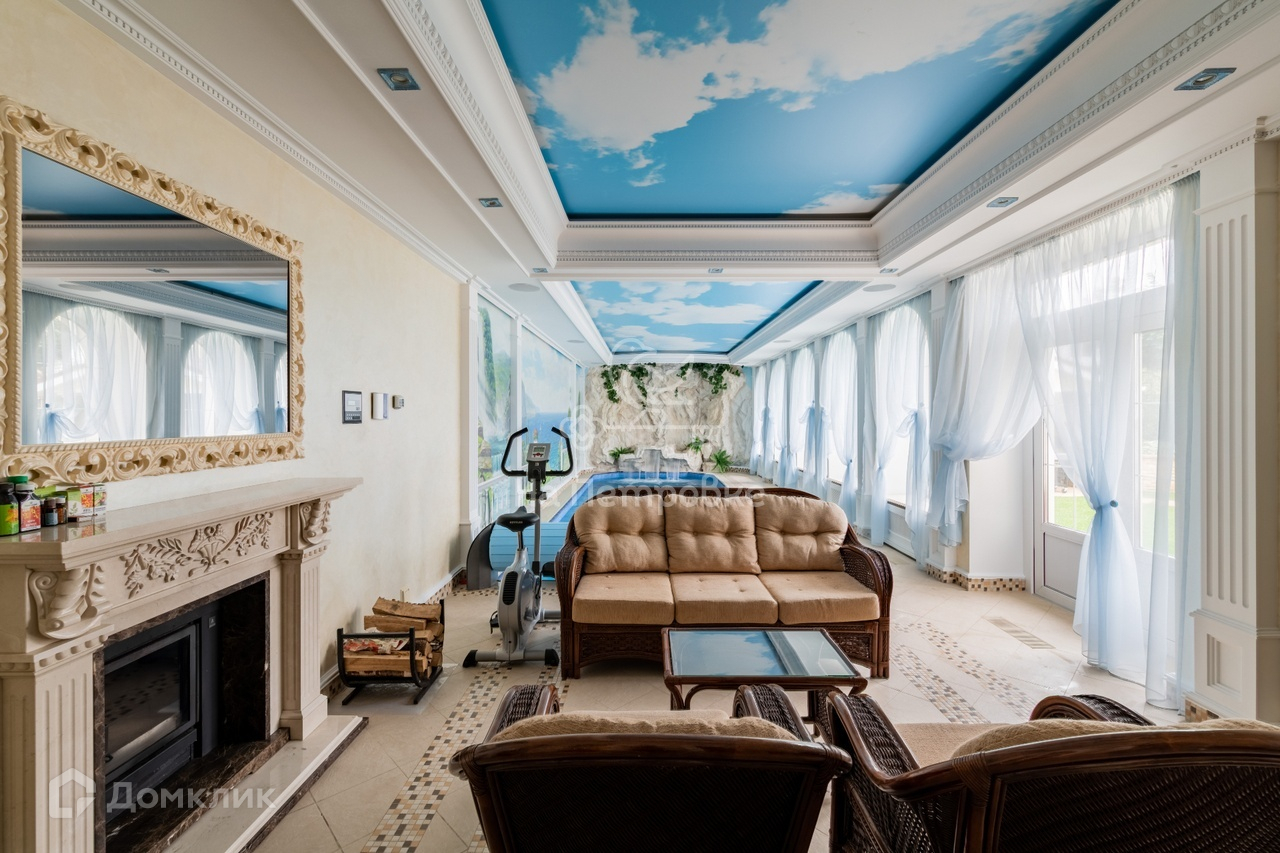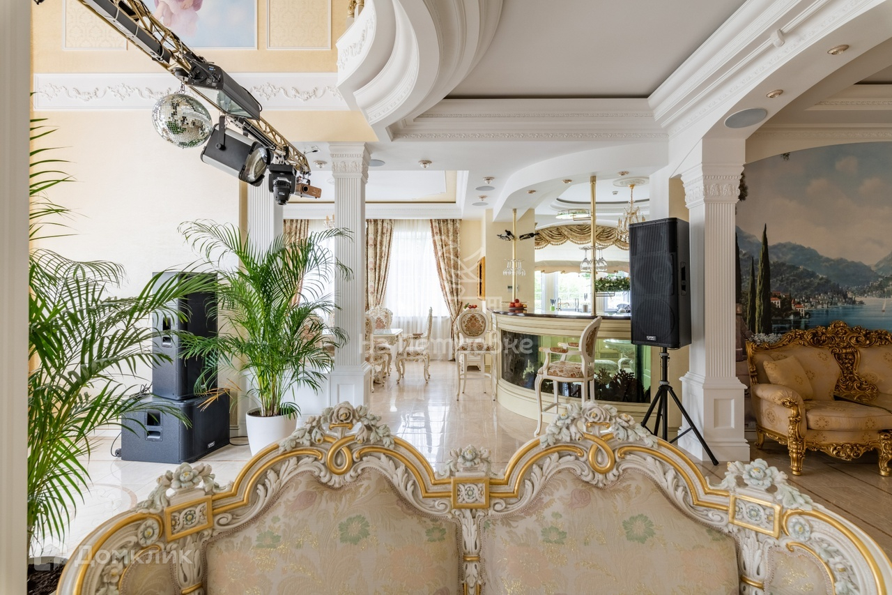 1-й этаж: прихожая, кухня, аквариум с морской водой на 1100 л, столовая, каминный зал, кабинет, 2 с/у, второй свет, бассейн с водными аттракционами, хамам, баня (канадский кедр), гараж, котельная.