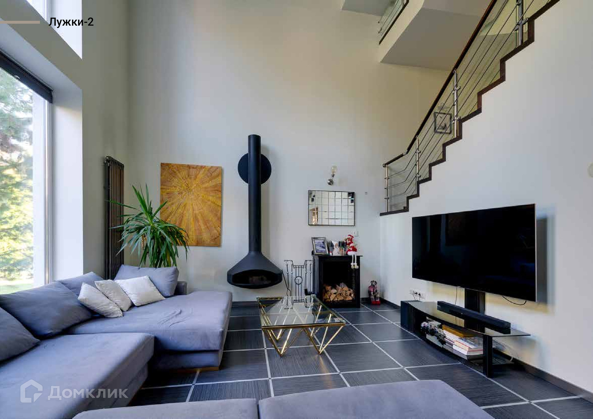 Впечатляющая высота потолков в каминном зале-гостиной. Просторная терраса на втором этаже, скрытая