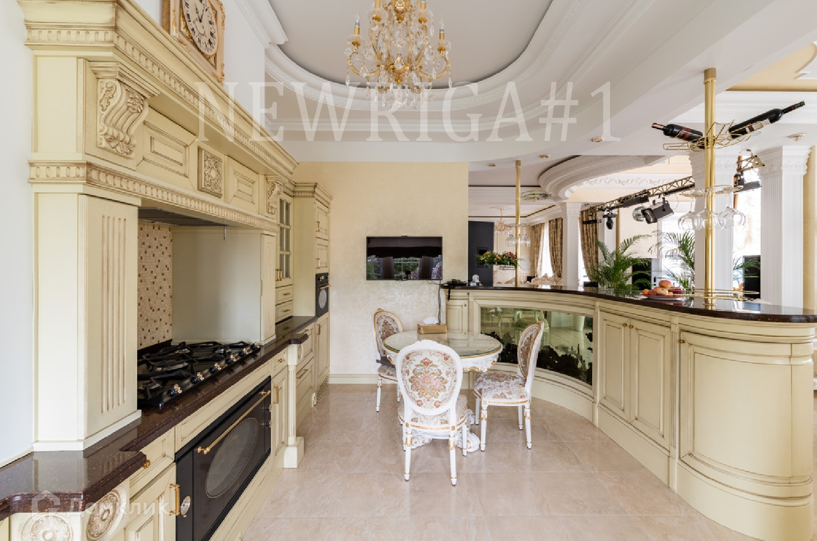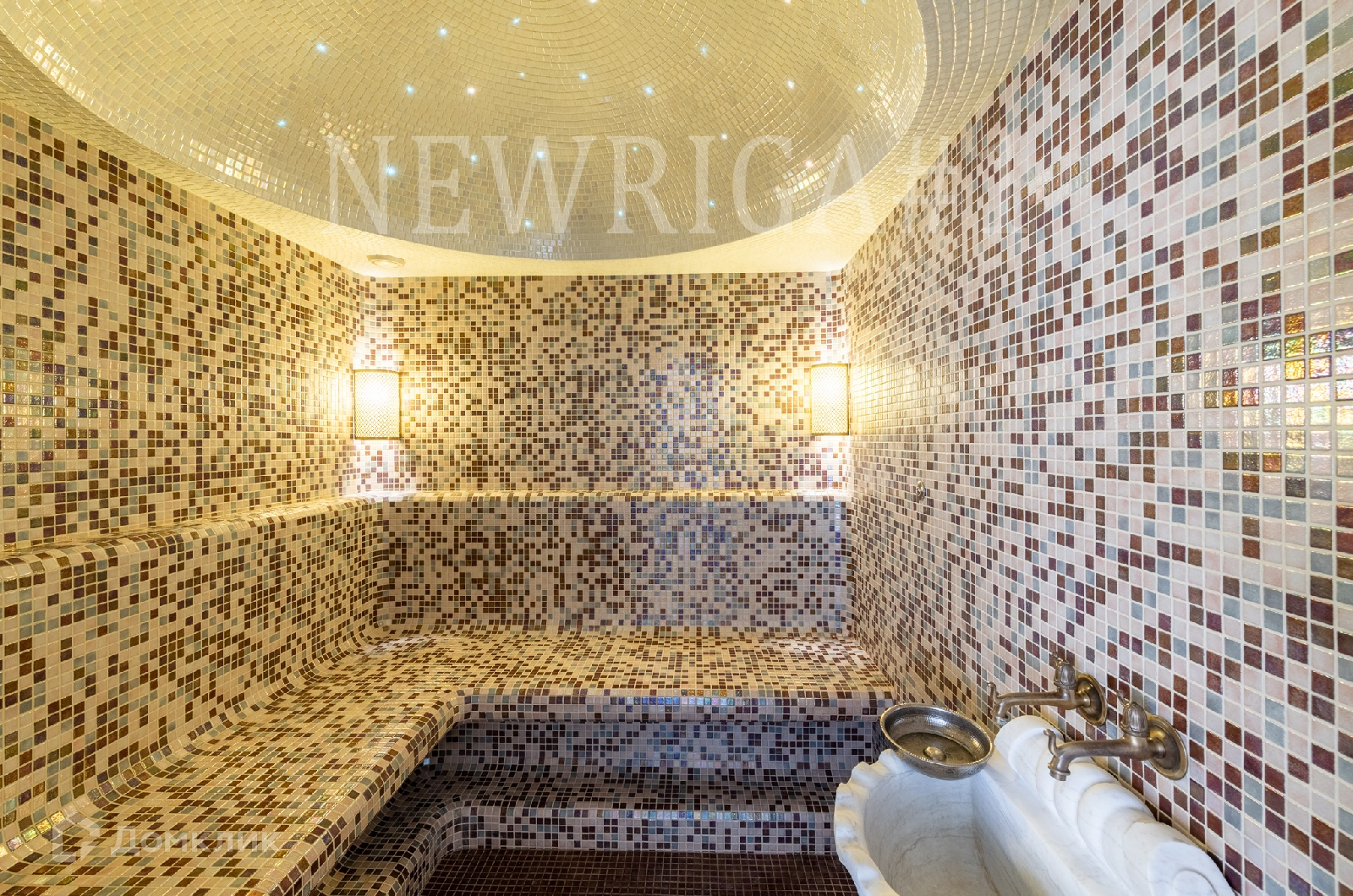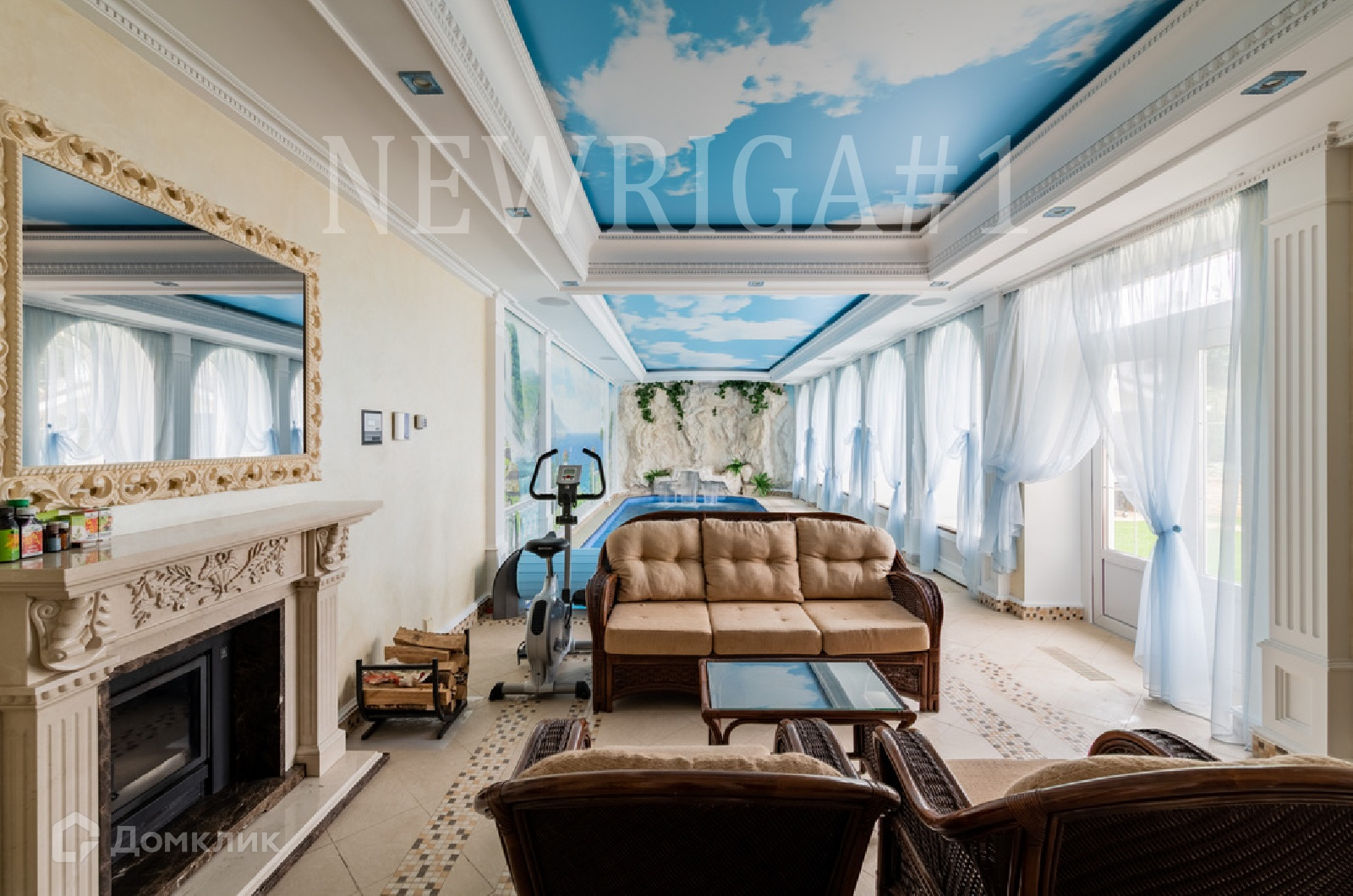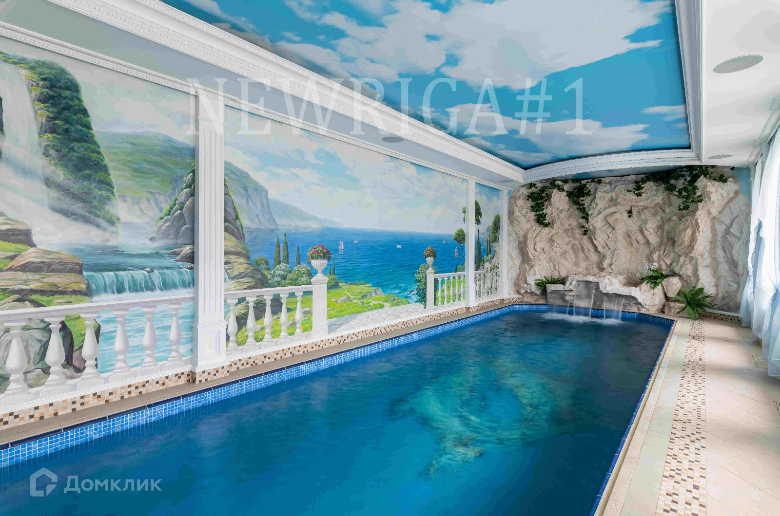 1 этаж - прихожая, кухня, аквариум с морской водой на 1100 л, столовая, каминный зал, кабинет, 2 с/у, второй свет, бассейн с водными аттракционами, хамам, баня (канадский кедр), гараж, котельная.