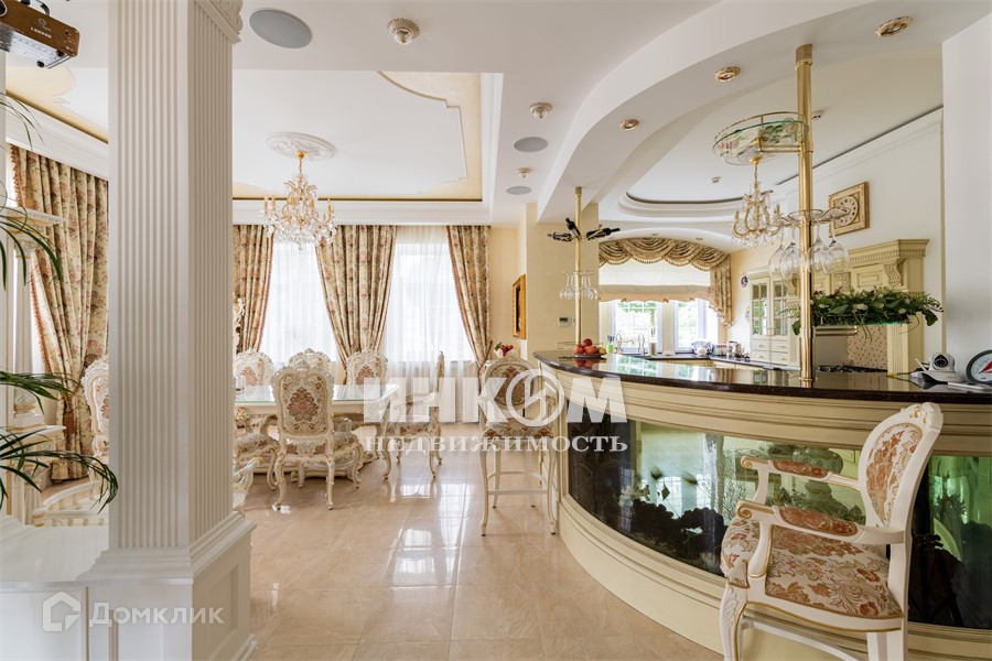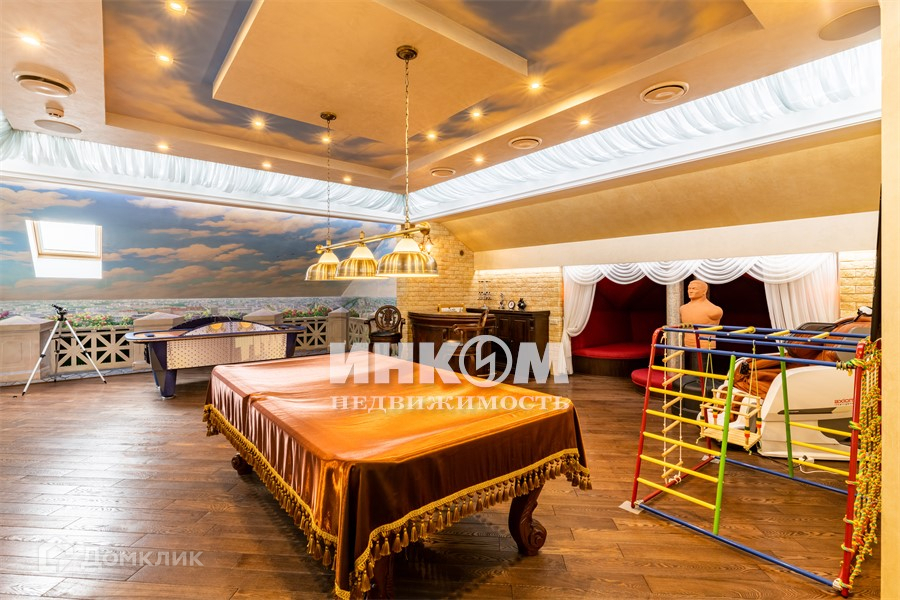 В основном доме 3 этажа. на 1-м этаже: прихожая, кухня, аквариум с морской водой на 1100 л, столовая, каминный зал, кабинет, 2 с/у, второй свет, бассейн с водными аттракционами, хамам, баня, гараж, котельная. На 2 м этаже: холл, 3 спальни (включая детскую), будуар, 2 с/у, постирочная, домашний кинозал. На 3м этаже: кальяная, игровой зал, бар, спальня, серверная, с/у, детская игровая, кладовая.