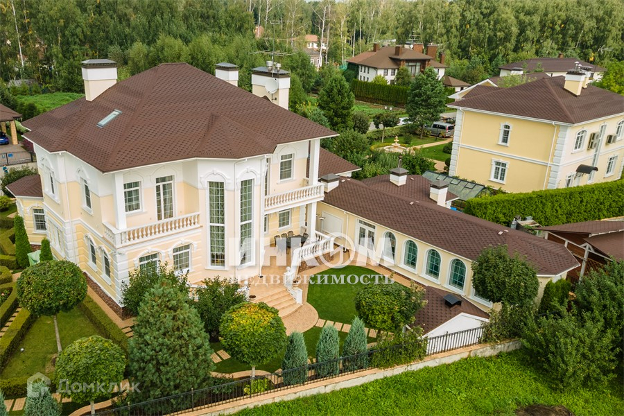 На участке 34 сотки расположены 3 строения (основной дом 770м, гостевой дом 262м и дом для персонала с гаражом и подвалом 192м).