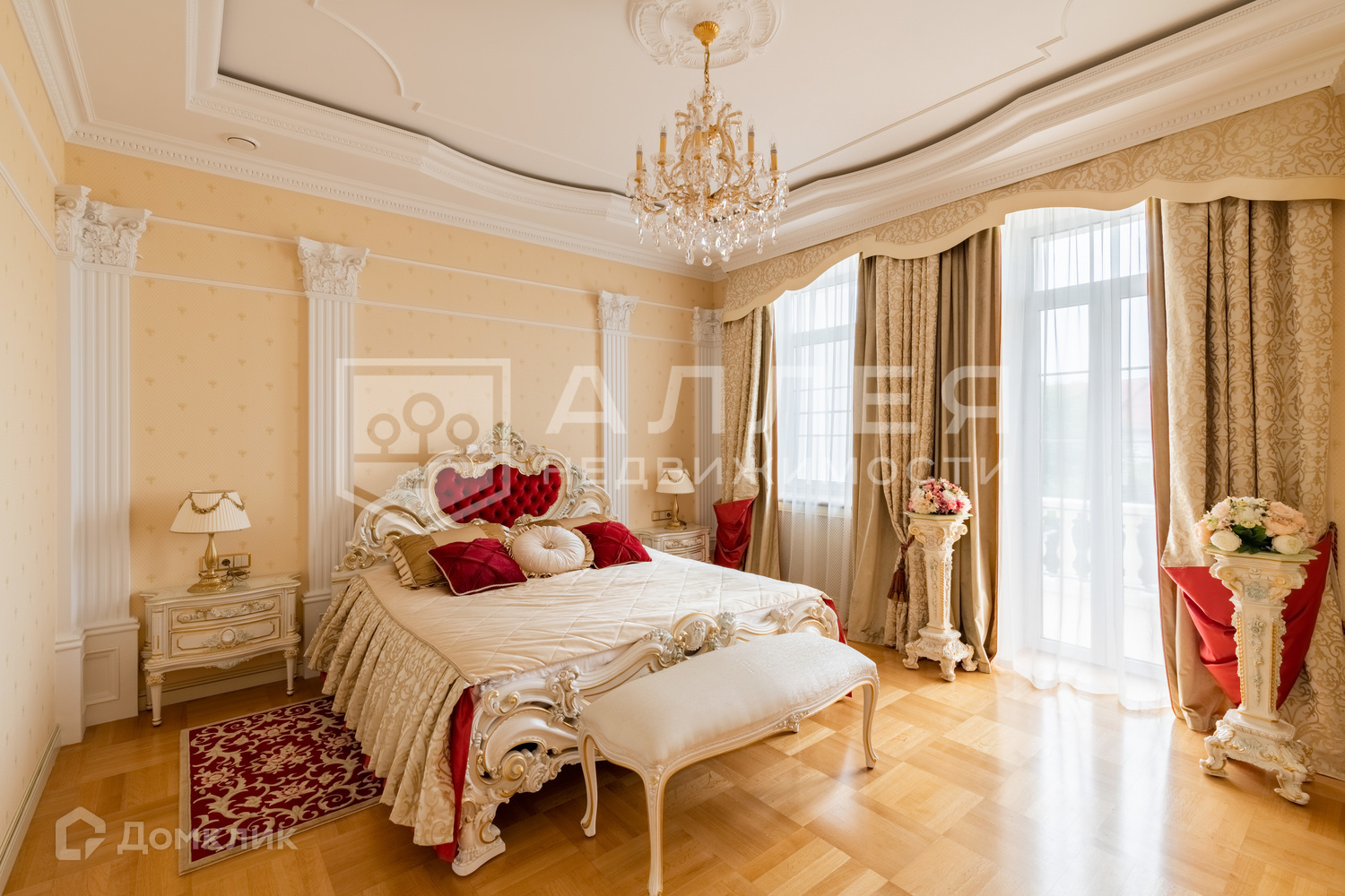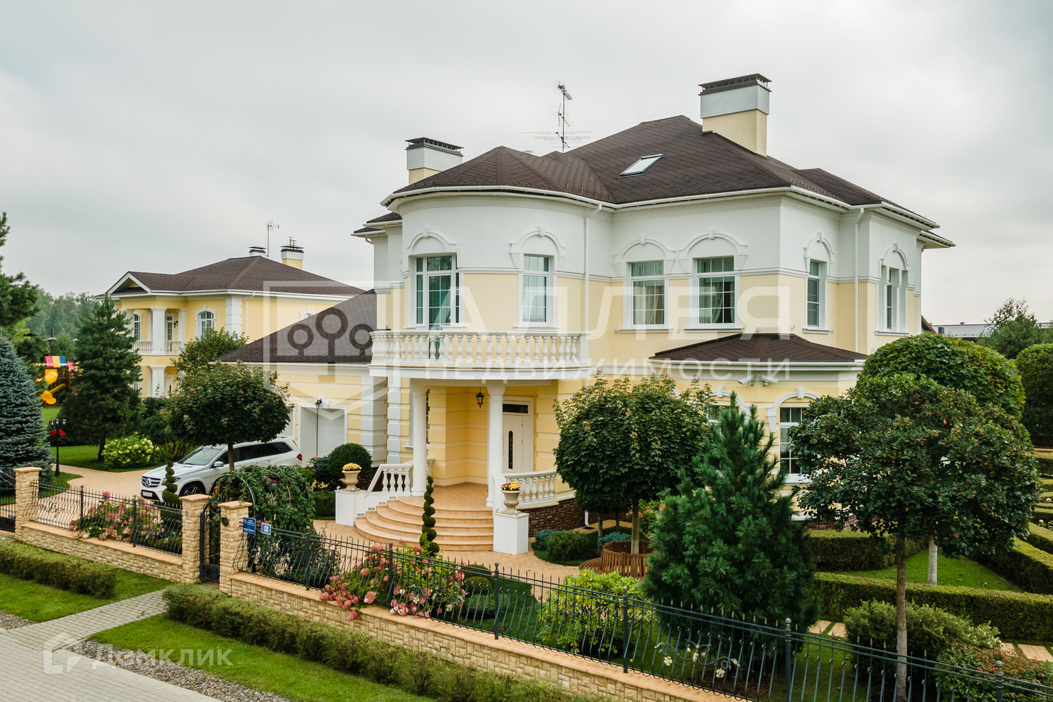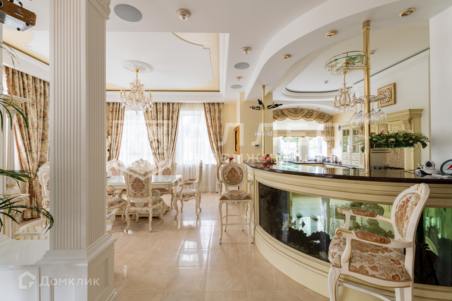 Дом: Дом с бассейном и вторым светом под ключ в стиле Ампир. Общая площадь 1230 кв. м: основной дом - 773 кв.м, гостевой дом - 263 кв.м., дом для персонала - 193 кв.м. На первом этаже есть кабинет, который при желании можно оборудовать в спальню. В мастер спальне отдельный с/у. В СПА - зоне баня, хамам, большой бассейн с подсветкой, гидромассажем, противотоком, фонтаном и водопадами. В доме также есть мраморный дровяной камин, домашний кинозал, бильярд, бар. Установлены приточно - вытяжная вентиляция, видеонаблюдение, встроенный пылесос, фасадное освещение, охранная система.
