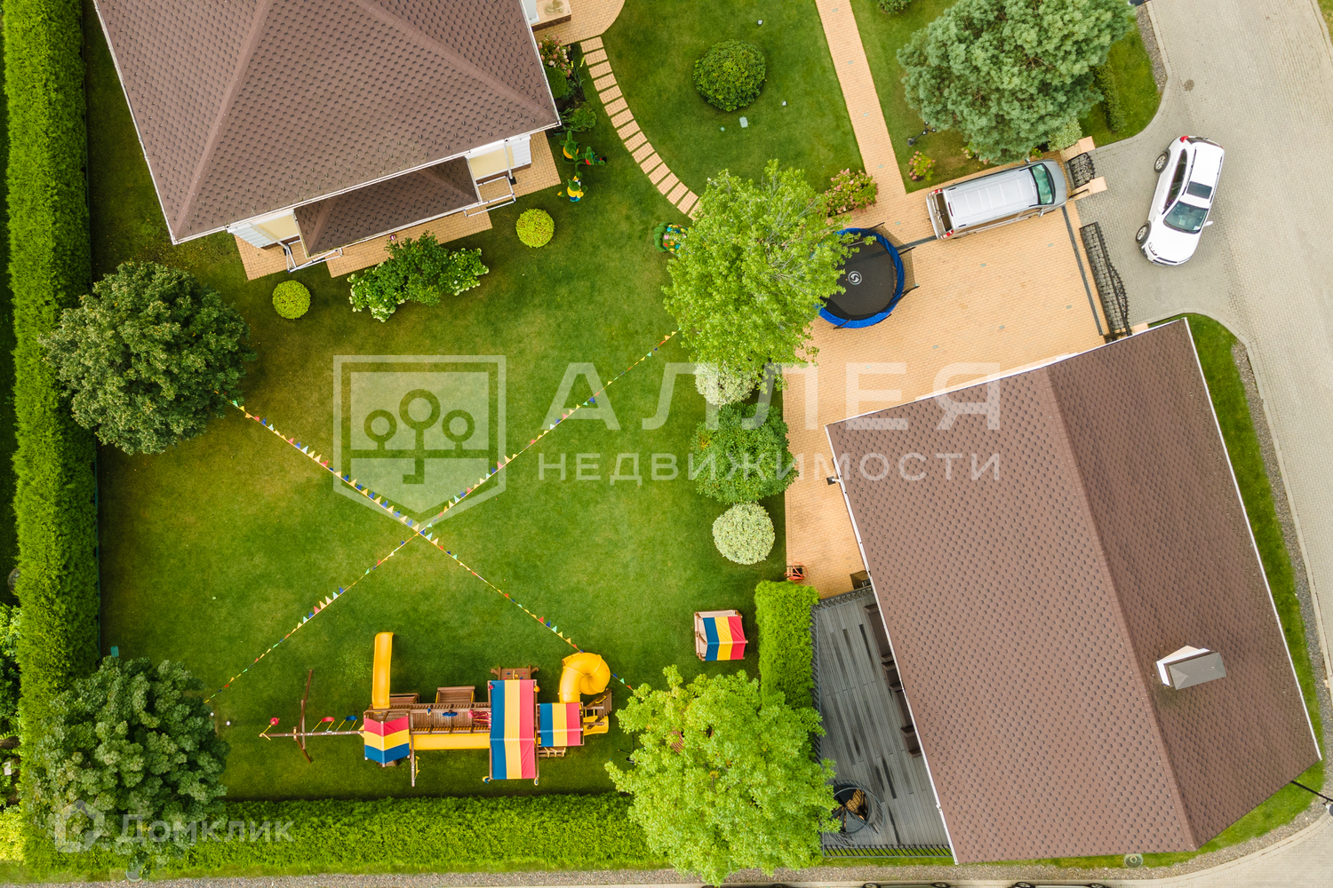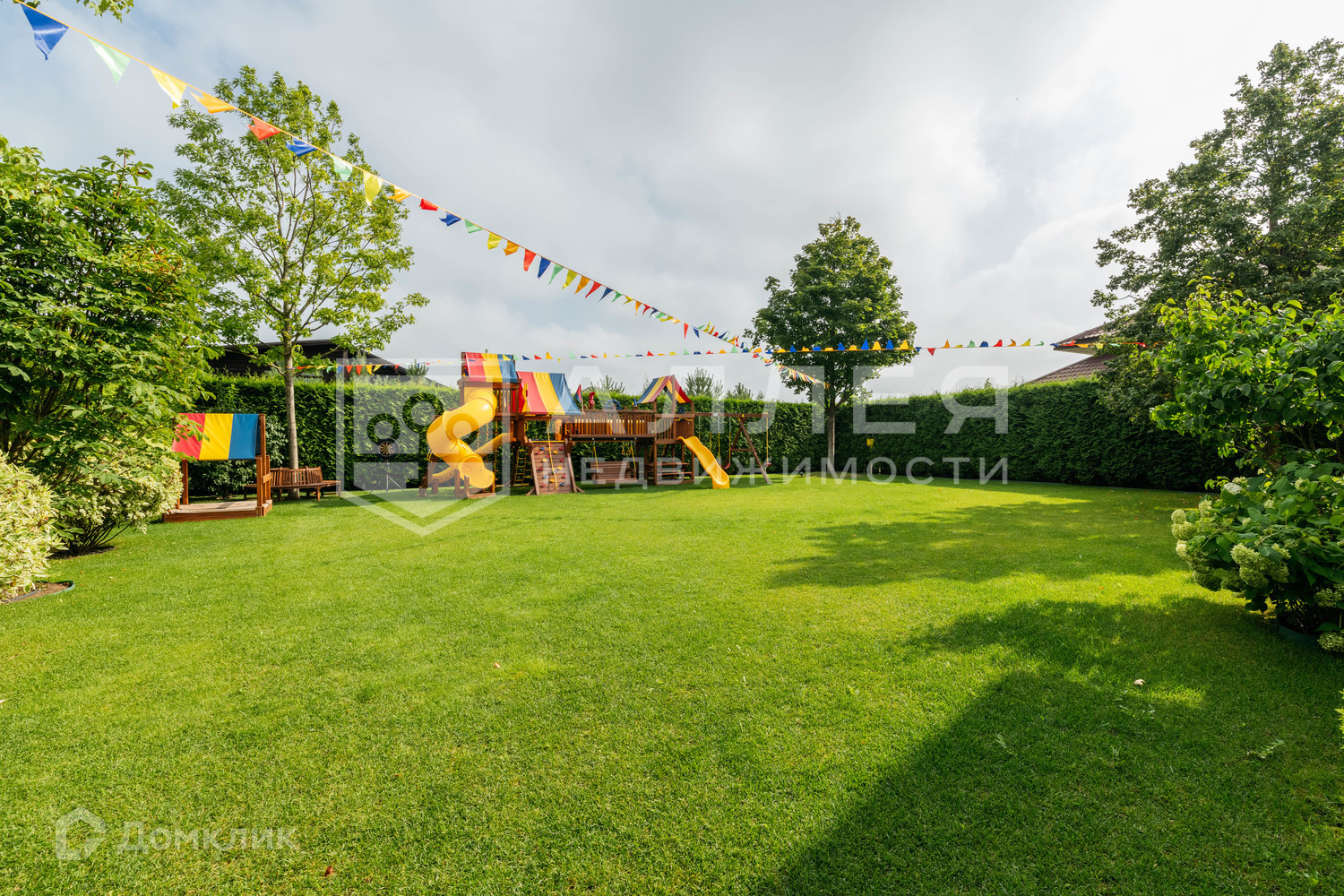 На территории также расположены большая детская площадка с горками и качелями, теплица с обогревом.