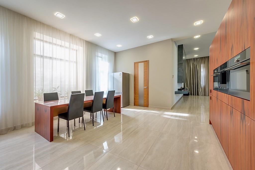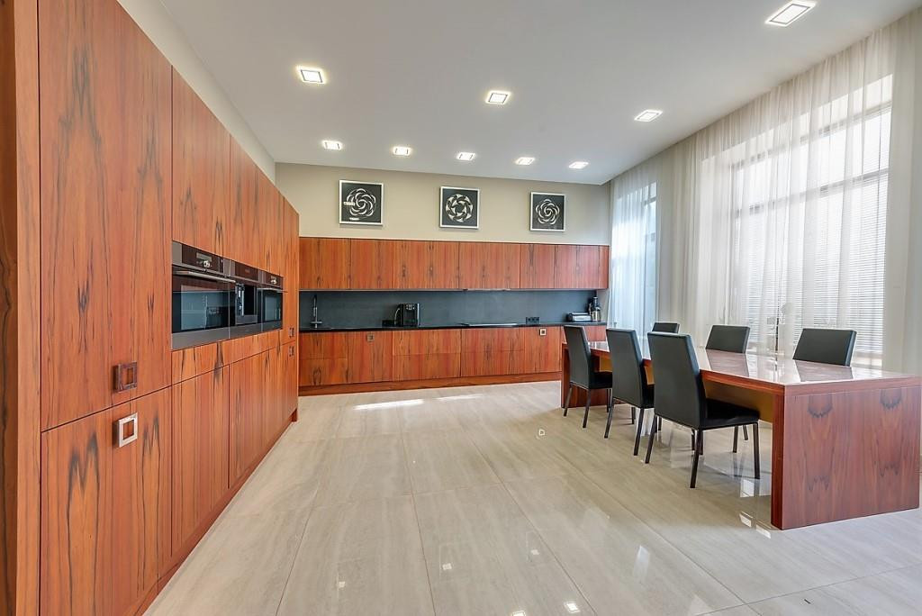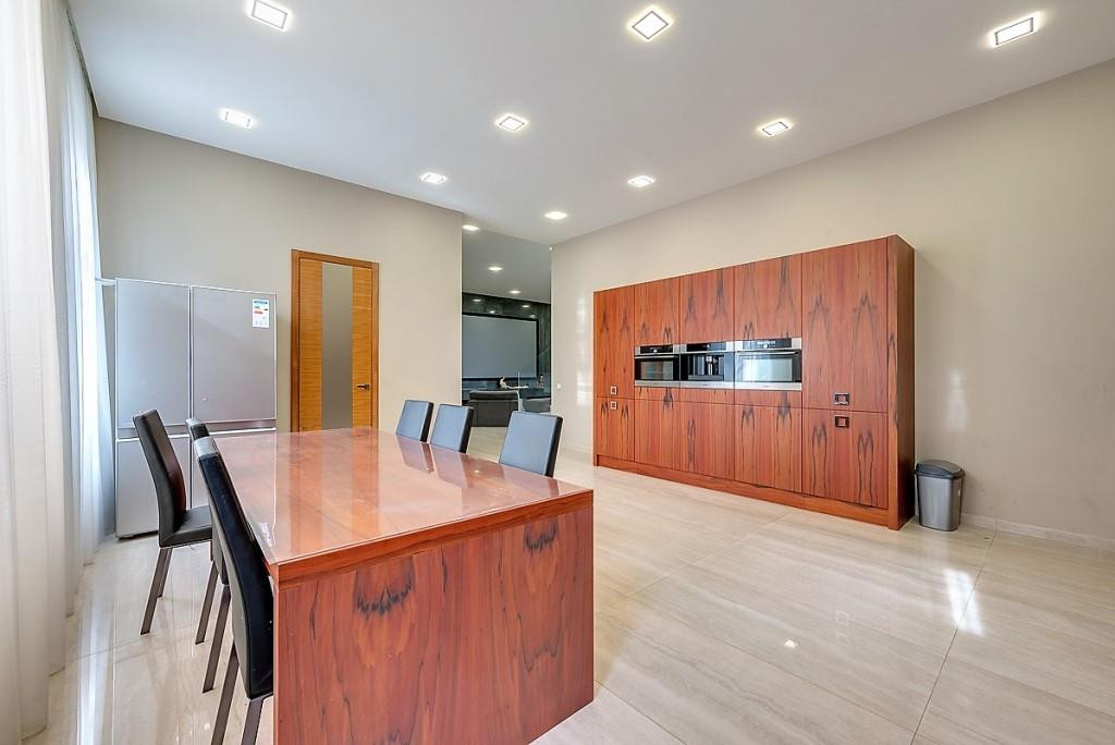 При ремонте использовались ценные породы дерева, итальянский мрамор, премиальные марки техники, а так же, дом оборудован приточной вентиляцией со сплит системой в каждой комнате, подогревами полов и высоко скоростным интернетом.
