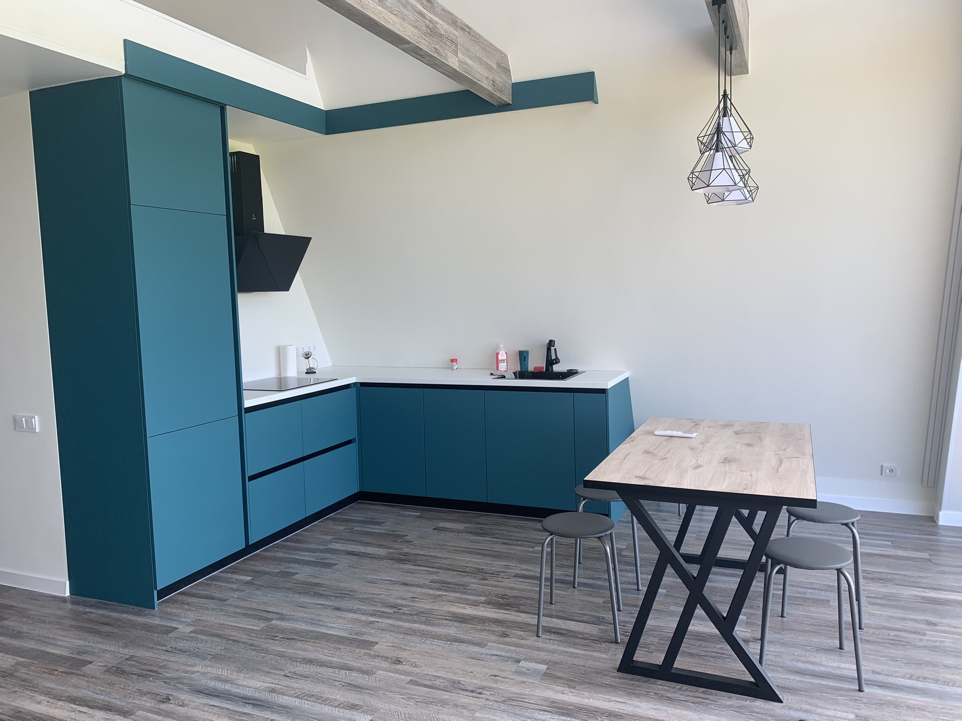 -кухонный гарнитур с техникой, в спальнях уже имеются кровати с матрасами (3шт.)