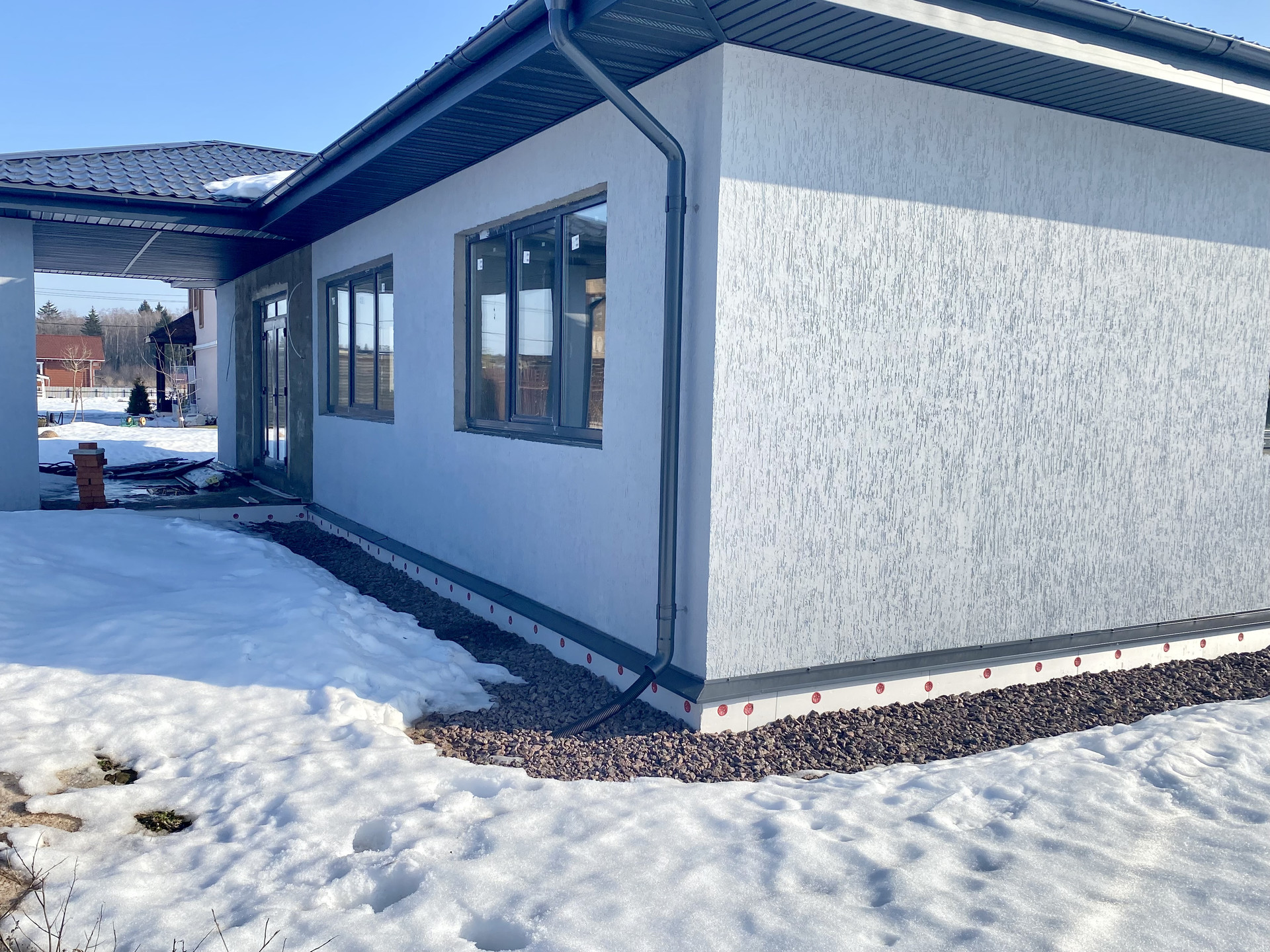 • Стены кирпич с фасадным утеплителем (Роквул Венти Баттс) оштукатурен и покрашен.