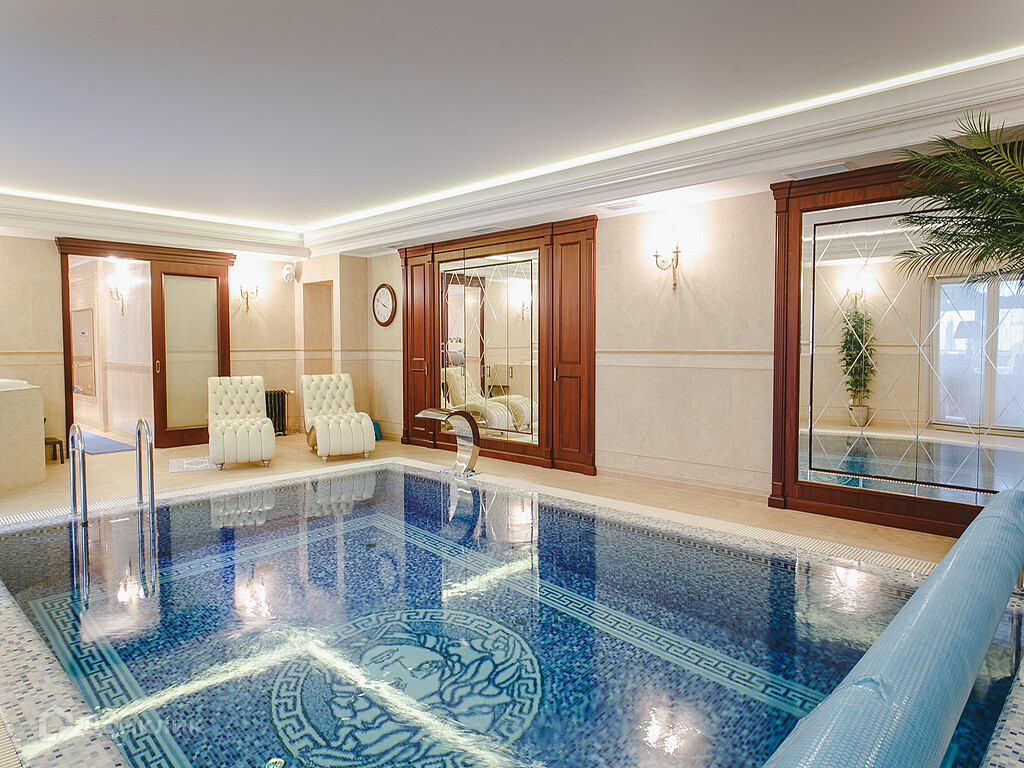В цокольном этаже расположены СПА-зона (бассейн, хаммам, процедурный кабинет, тренажёрной комнатой, винная комната, зимний сад, гараж) и набор хозяйственный помещений для прислуги и хранения.