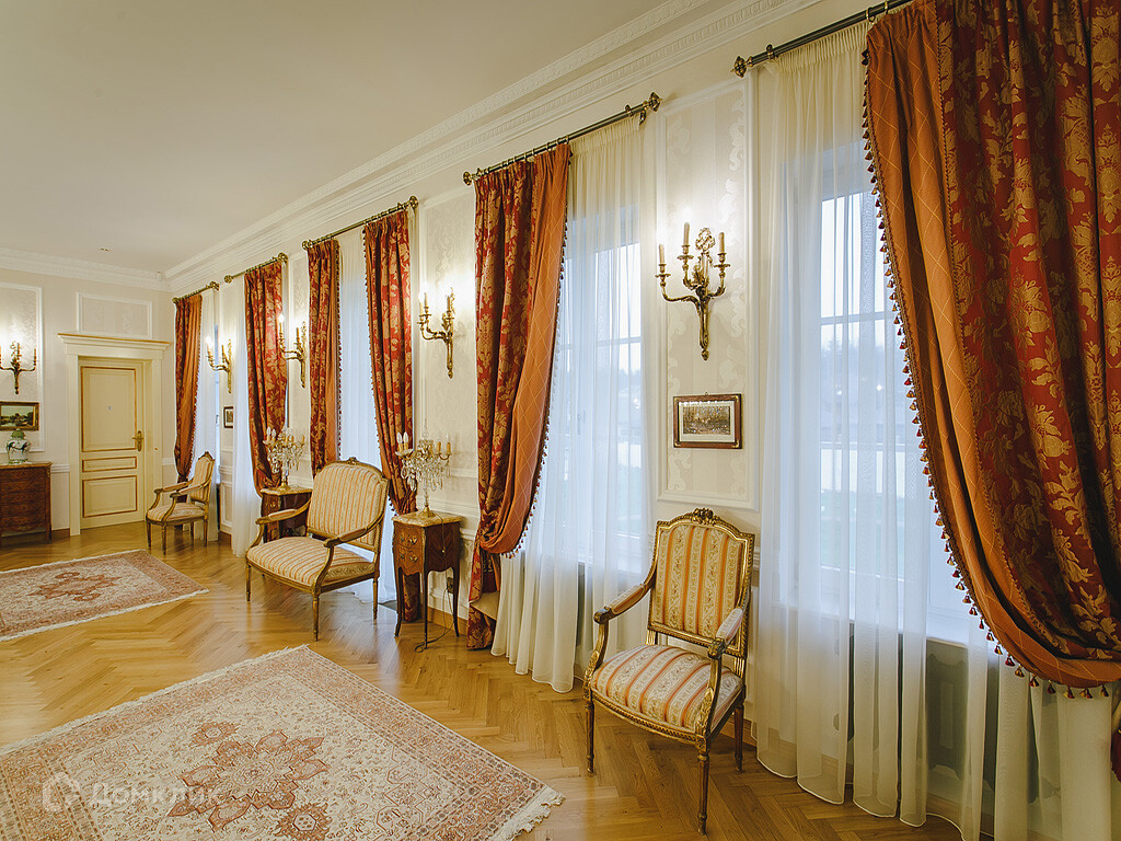 На первом этаже размещены: парадный холл, каминный зал, кухня, служебная кухня, игровая, комната персонала.