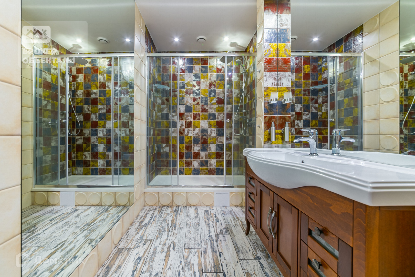 Вся мебель и техника итальянских и германских производителей. Двери изготовлены из массива. В каждой комнате выполнена шумоизоляция.