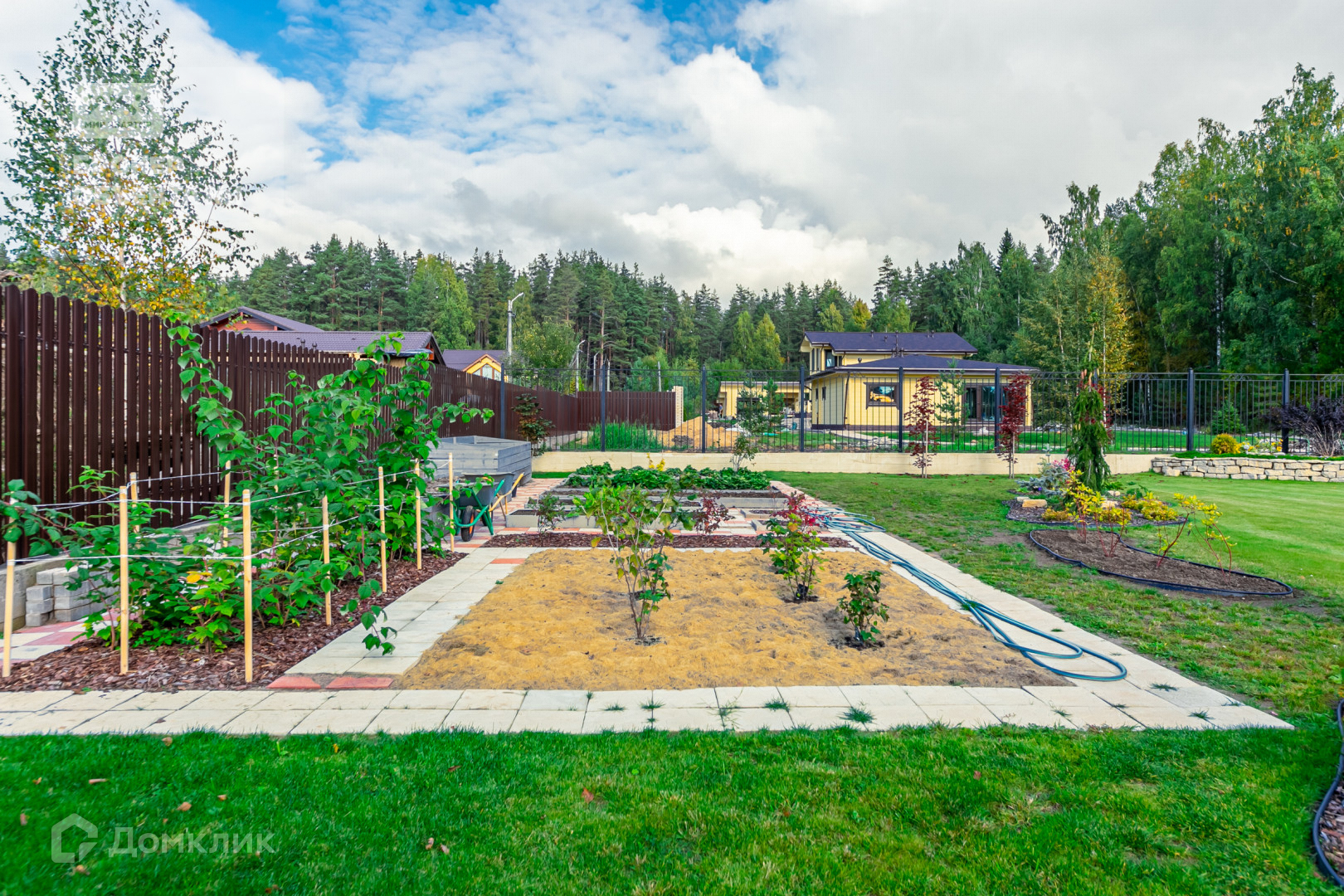 Что касается самого участка, то на нем проведен дренаж, высажены различные породы хвойных, плодовых деревьев и кустарников, а если Вам нравится заниматься выращиванием, например клубники, то Вам, безусловно, приглянется отведенный под эти нужны небольшой огород.