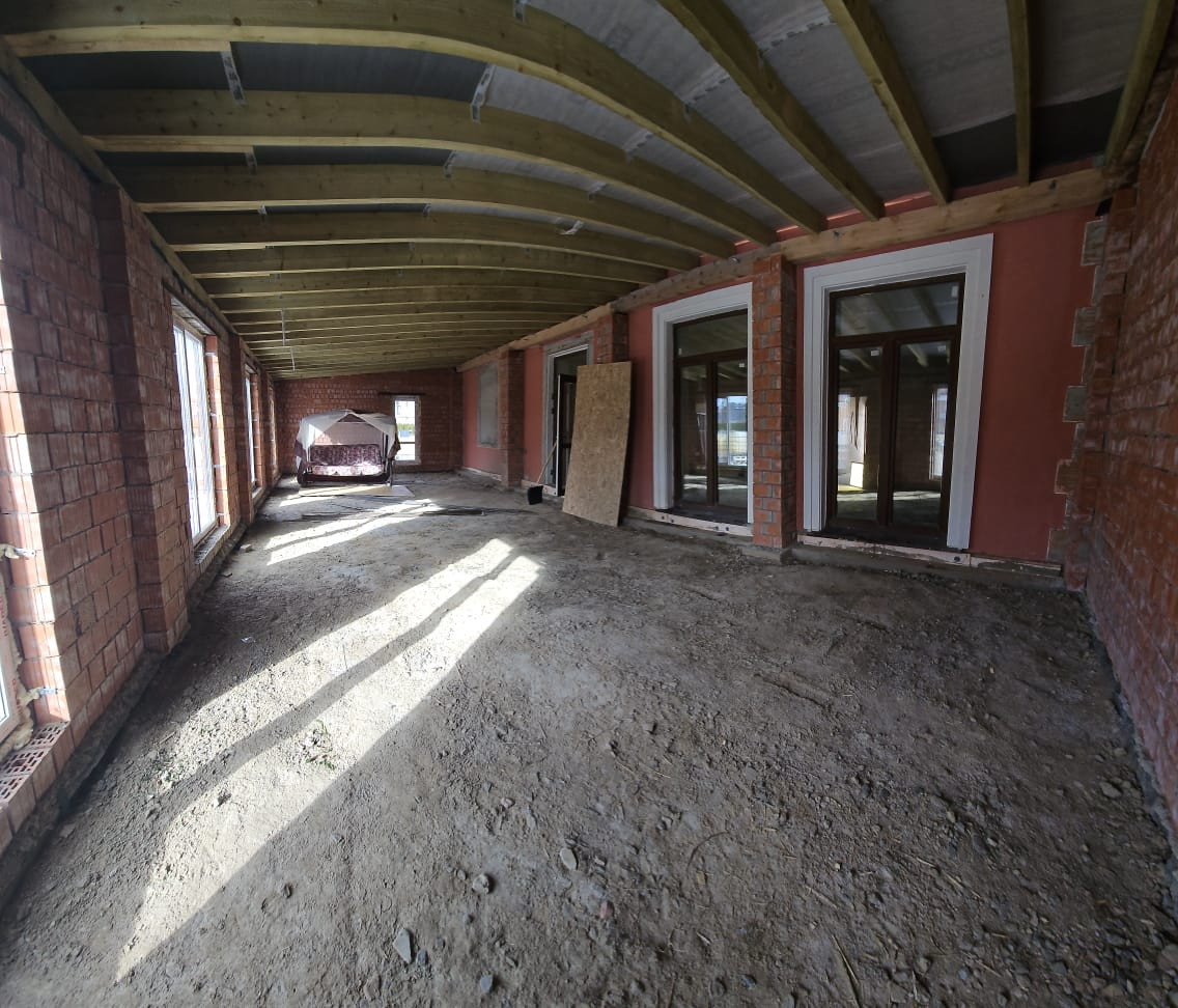Дом полностью построен, территория обнесена кирпичным забором на фундаменте, на участке залит фундамент под баню. Дополнительно (не указано на планировке) к дому пристроена большая светлая теплая веранда. Так же обустроена мансарда площадью 30 кв. м.