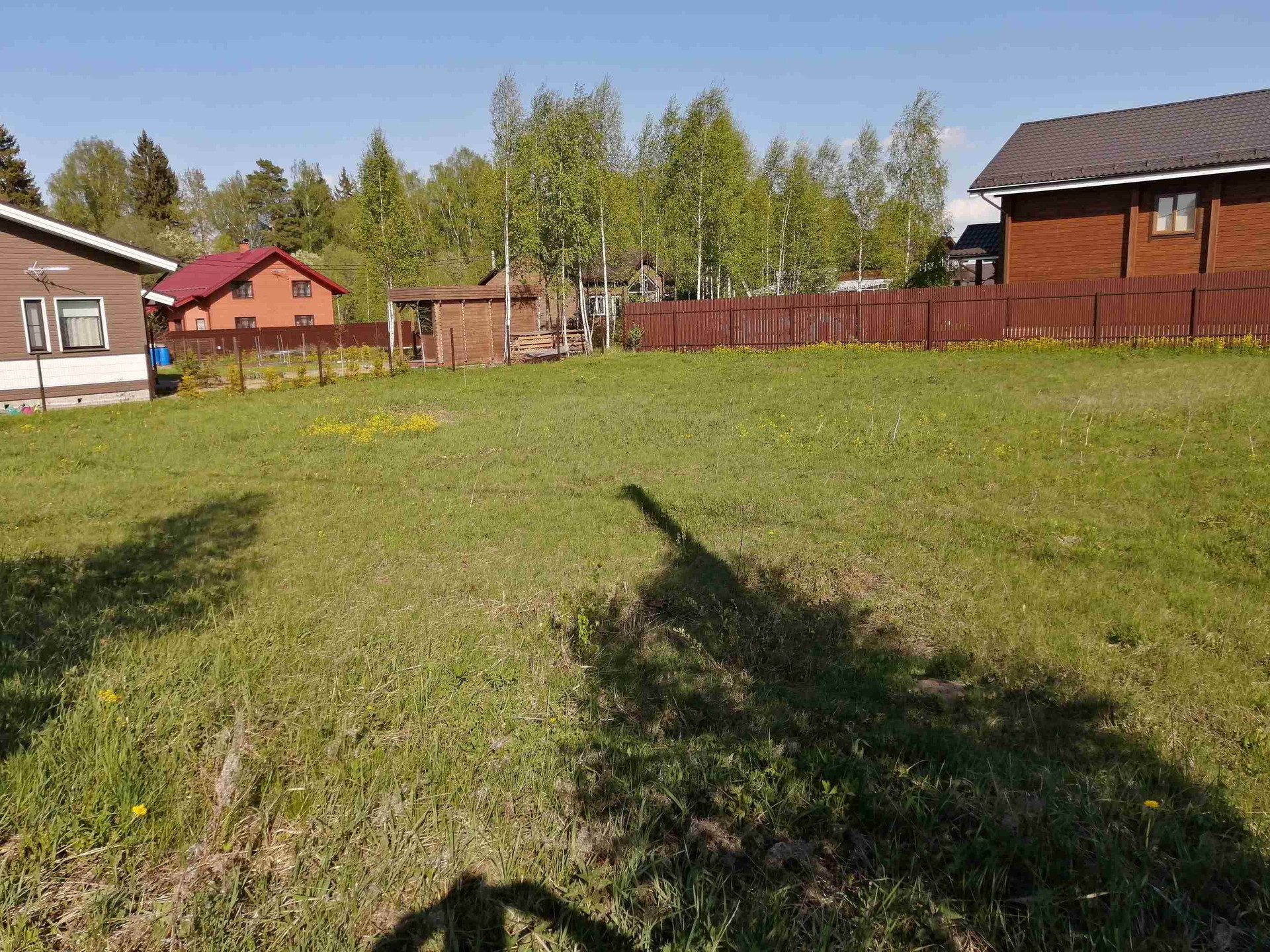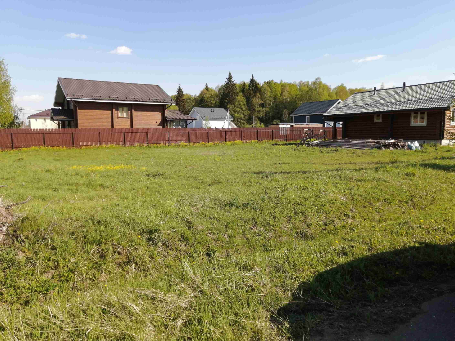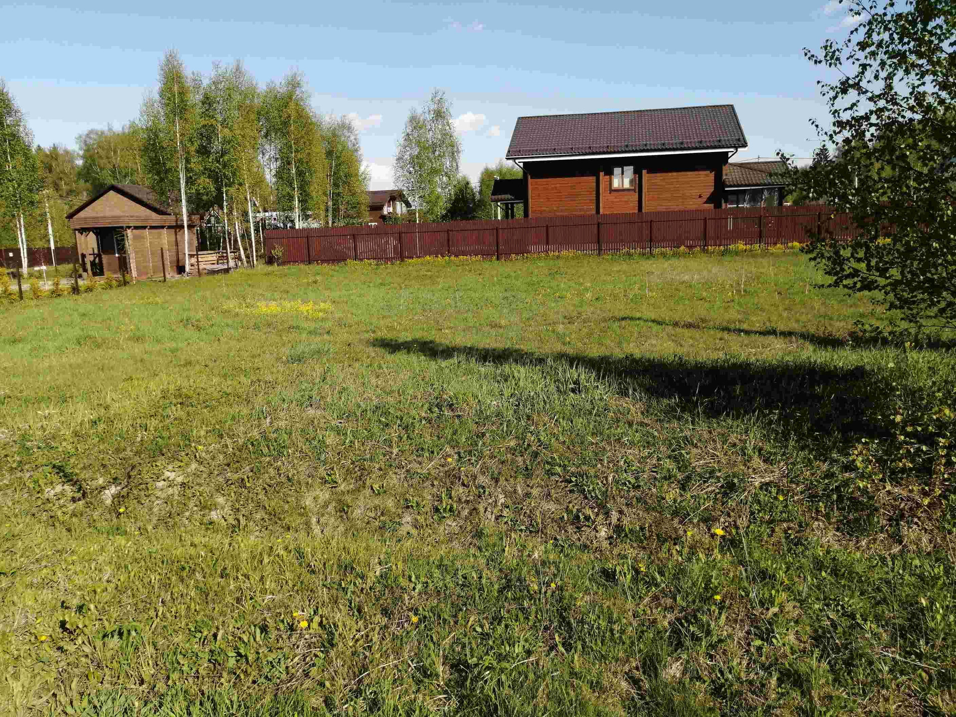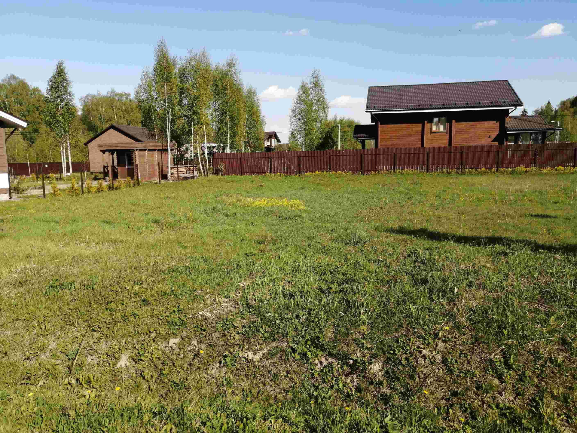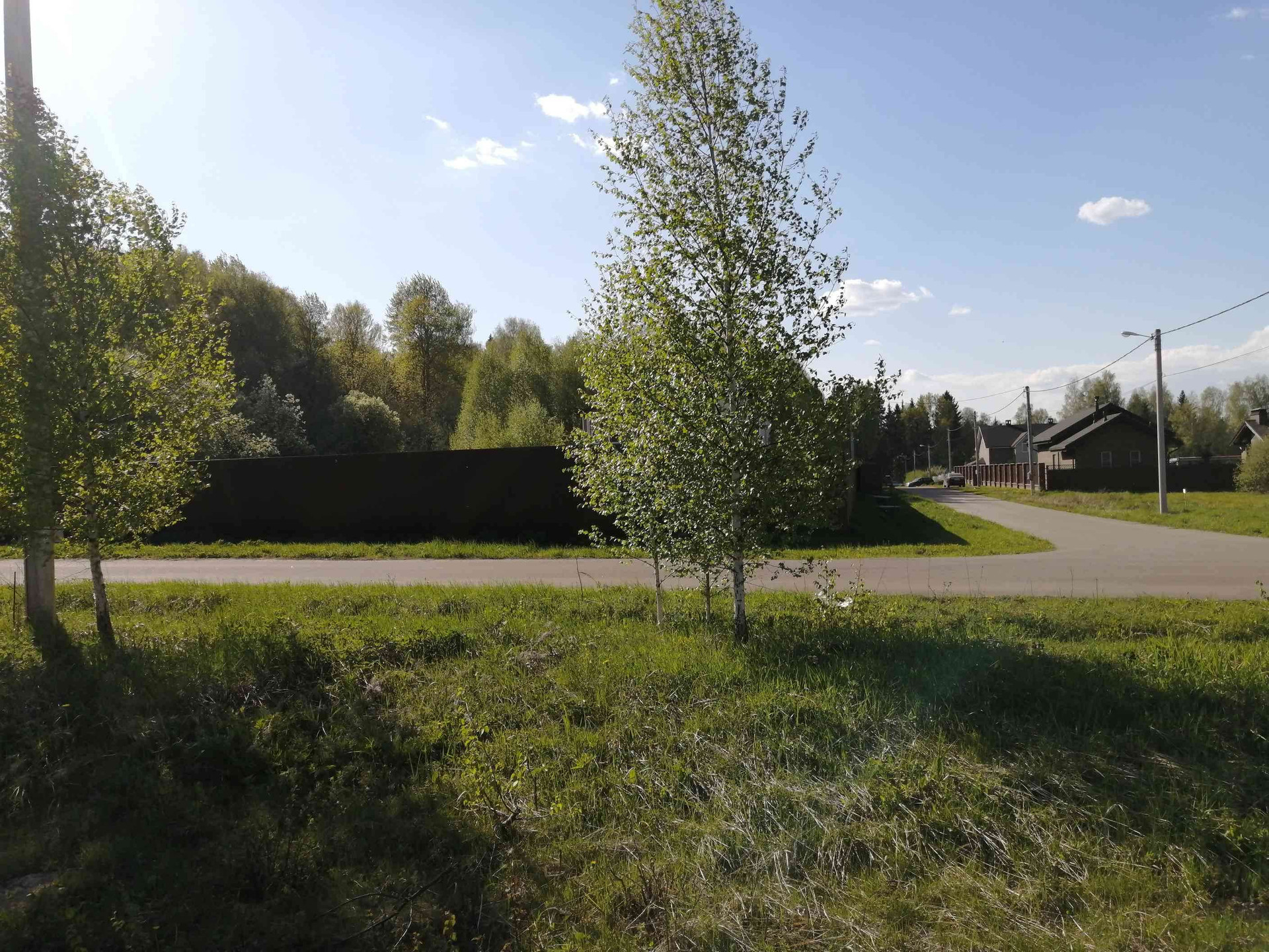 Участок правильной формы, без уклона. Расположен в тихой части поселка, недалеко от леса. Соседи с трех сторон. Электричество 15 кВт на столбе. По посёлку проходят асфальтированные дороги. Большая часть посёлка уже построена.