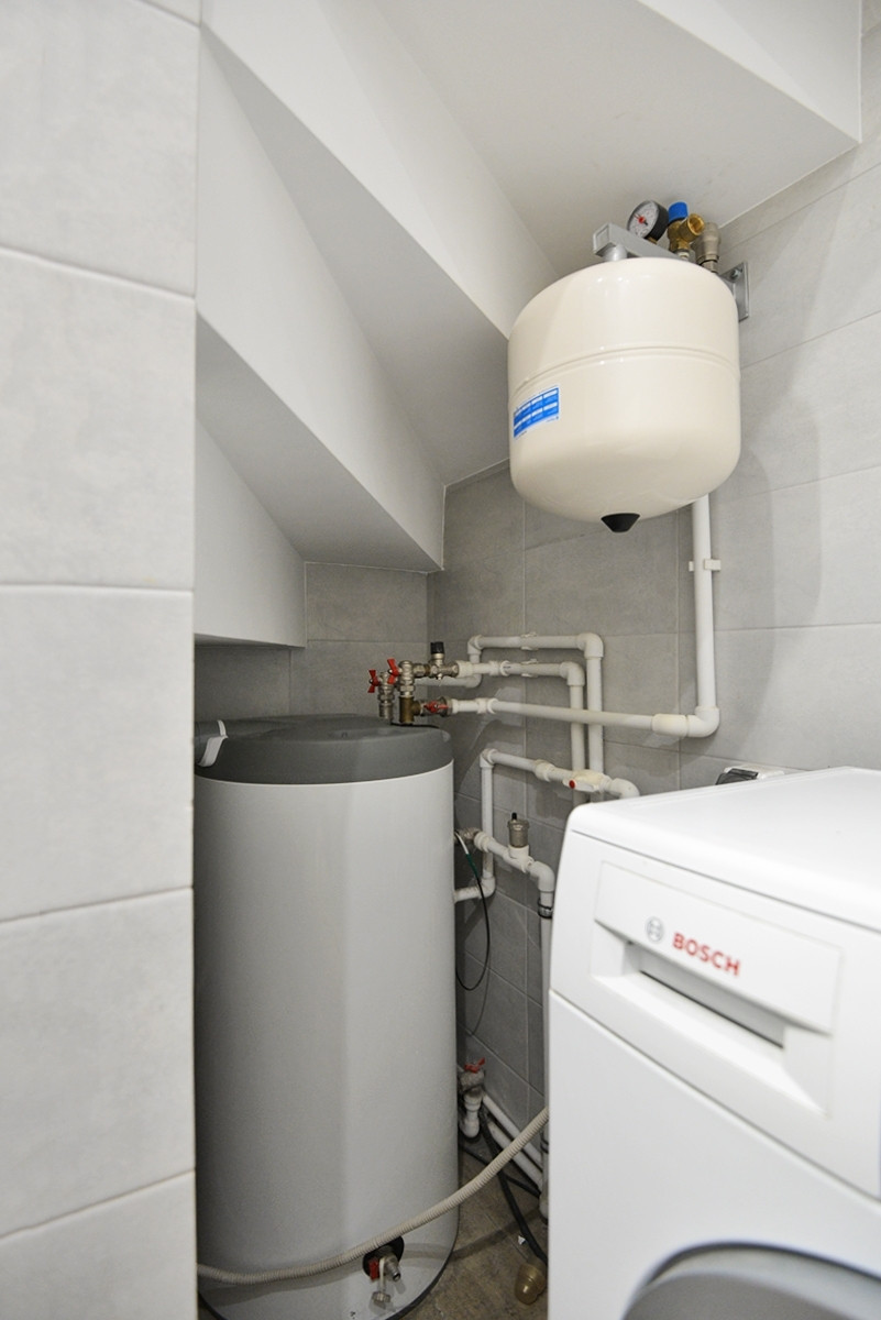 Теплый пол в доме (система водяного отопления) на весь первый этаж и санузел на втором этаже, бойлер, система фильтрации и очистки воды.