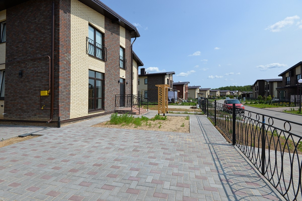 У дома расширенная парковка на 2 авто, патио-зона под барбекю, готовое решение в виде арки и угла под декоративное цветение девичьего винограда, розария, плюща (на усмотрение).