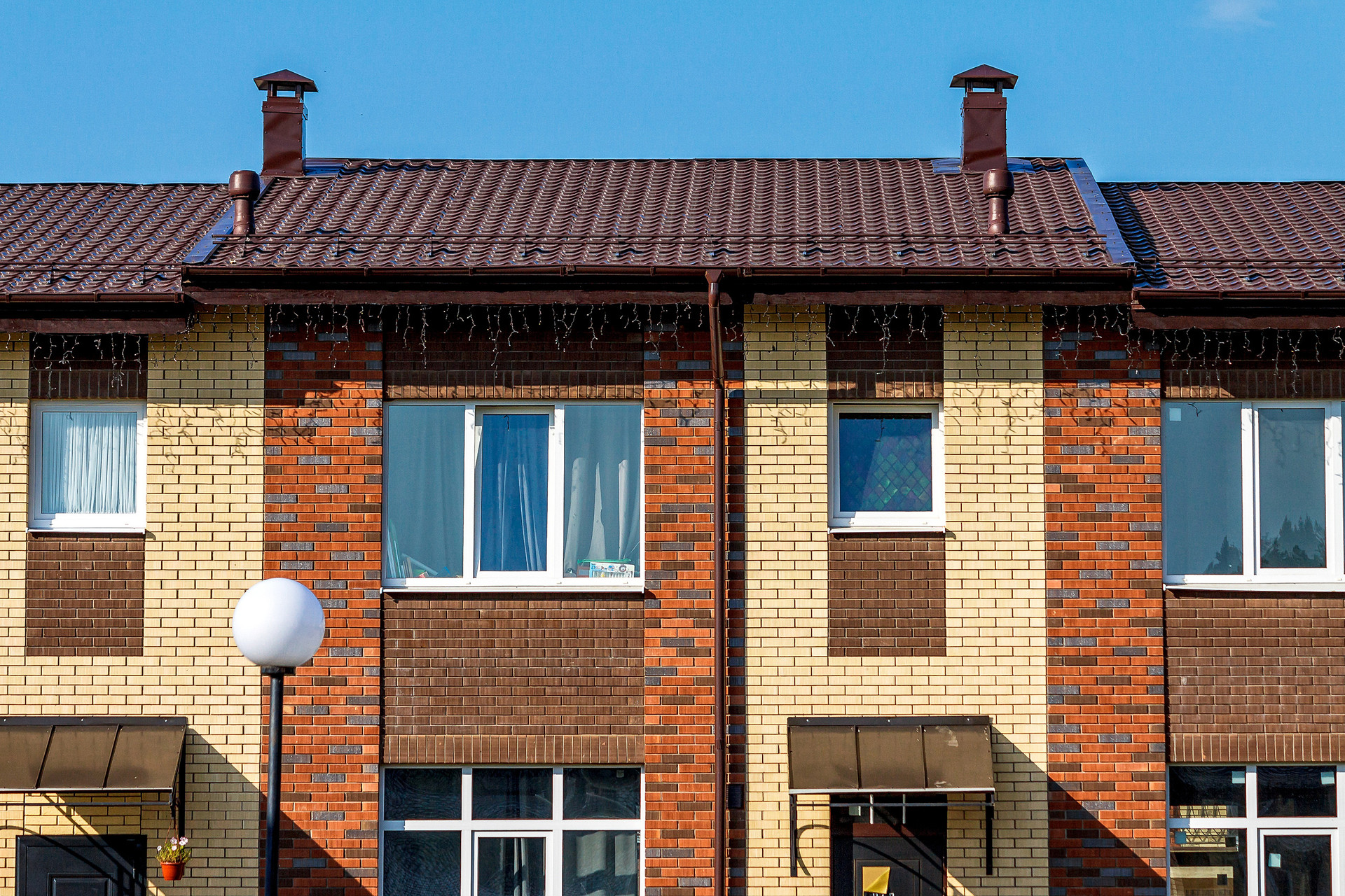 Материал стен таунхауса выполнен из экологически чистого кирпича марки Porotherm, отделка фасада - керамический облицовочный российский кирпич "Kerma Premium". Это долговечные огнестойкие материалы, которые хорошо устойчивы к любым климатическим воздействиям.