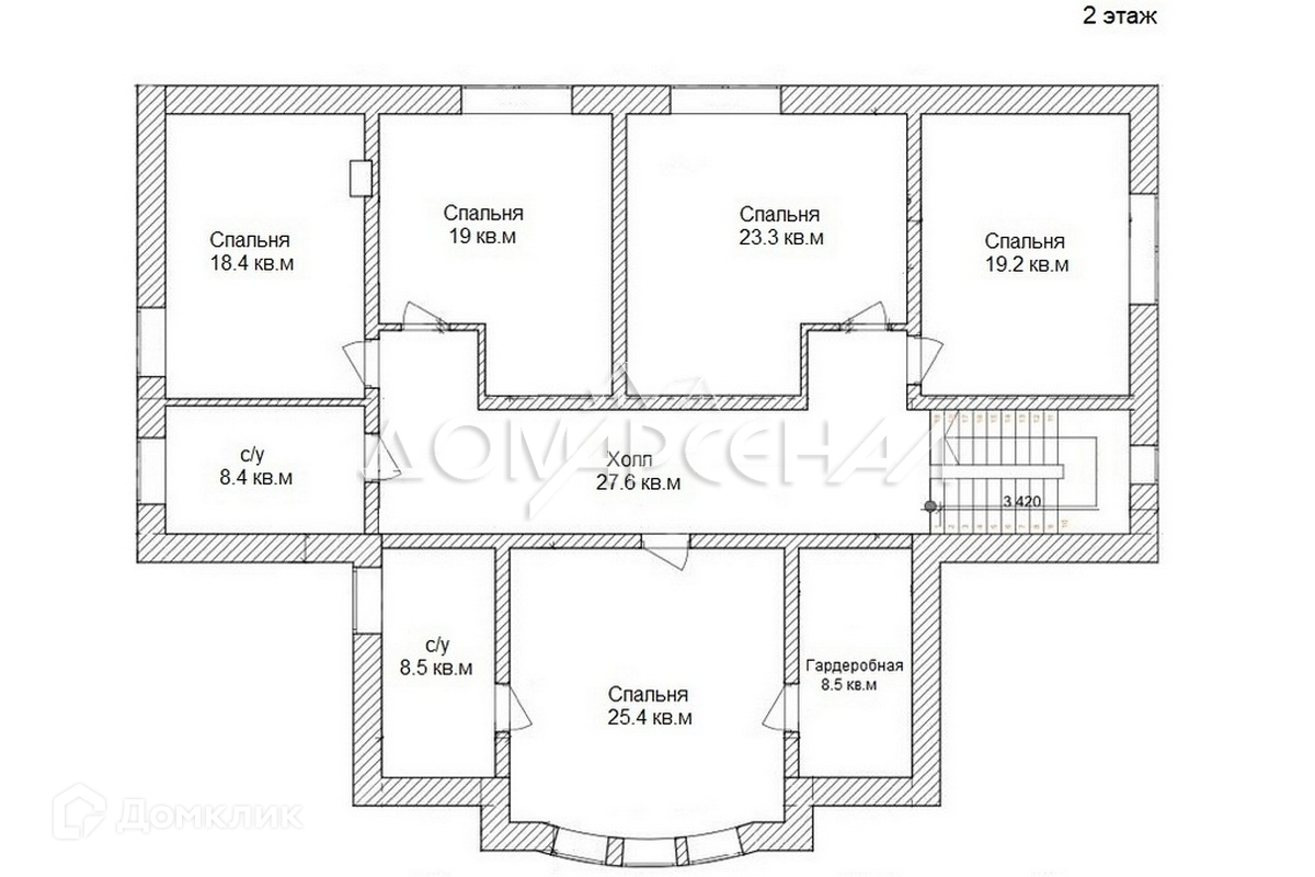 2 этаж: Мастер-спальня с гардеробной и с/у, 4 спальни, с/у.