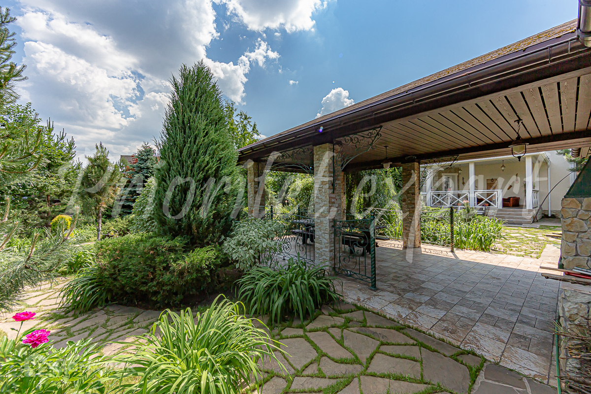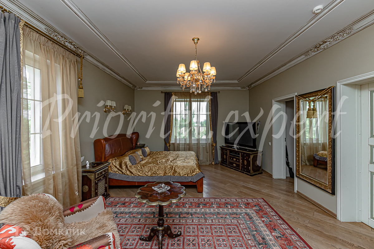 Дом: Загородный дом со вторым светом площадью 480 м2 с отделкой «под ключ», в строго охраняемом коттеджном поселке бизнес- класса. Дом полностью меблирован, расположен на шикарном участке с ландшафтом, двухэтажным гаражом с квартирой для персонала и благоустроенной зоной барбекю. Материал стен – кирпич, перекрытия ж/б плиты, фундамент – ленточный, лестница – монолит.