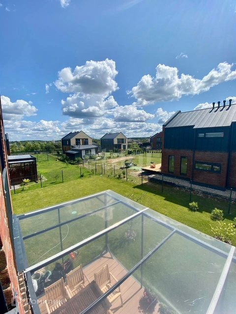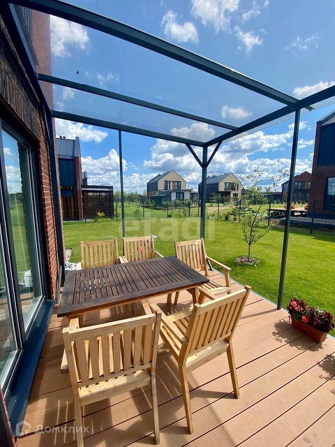просторная кухня-гостиная с выходом на солнечную террасу, гостевая спальня на 1 этаже, кабинет, детская комната и мастер спальня с собственной комнатой для вещей и потенциальным санузлом на 2 этаже. В доме 3 полноценных ванных комнаты, бойлерная-постирочная. На террасе с прозрачной крышей зона барбекю с грилем.