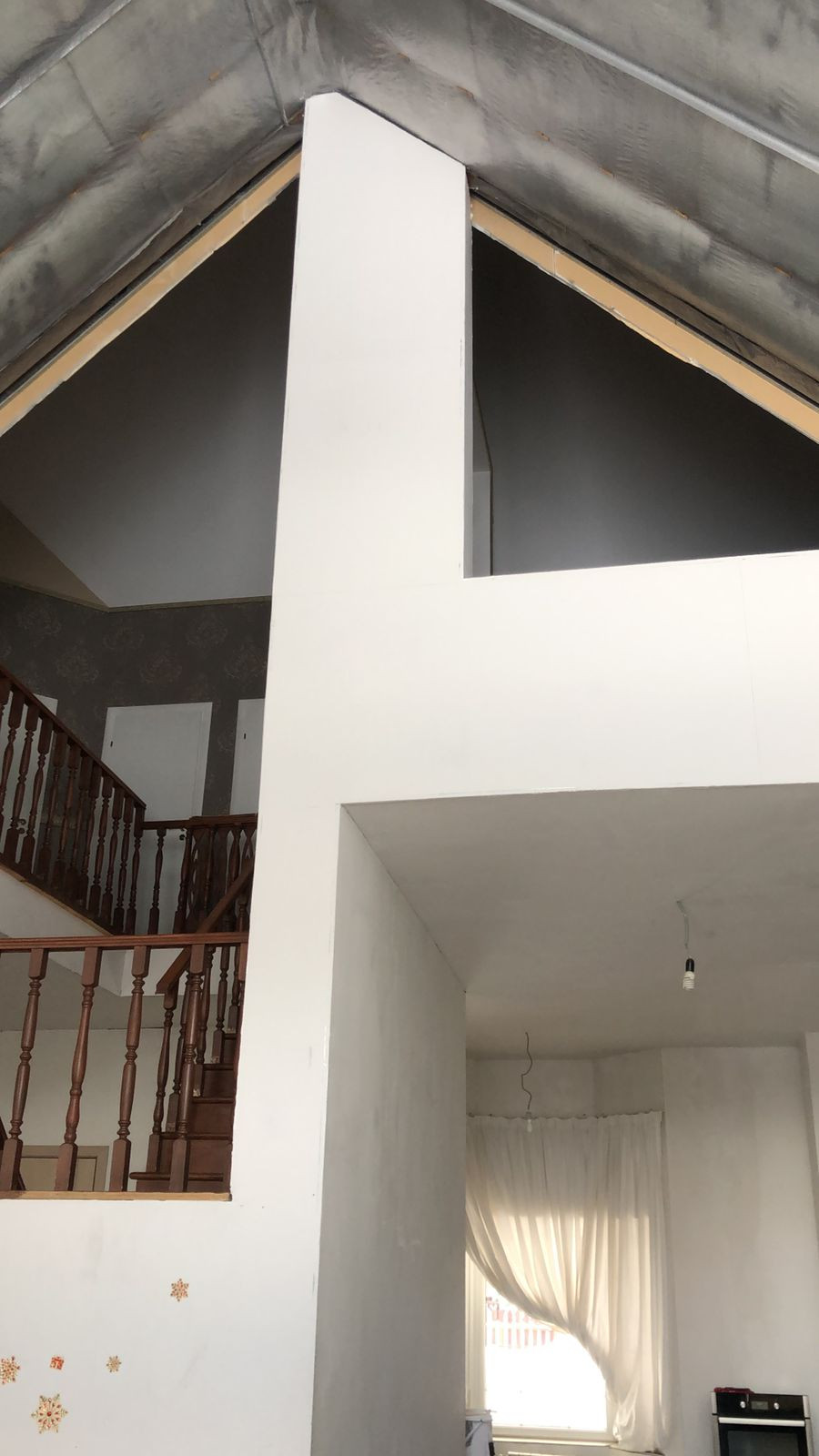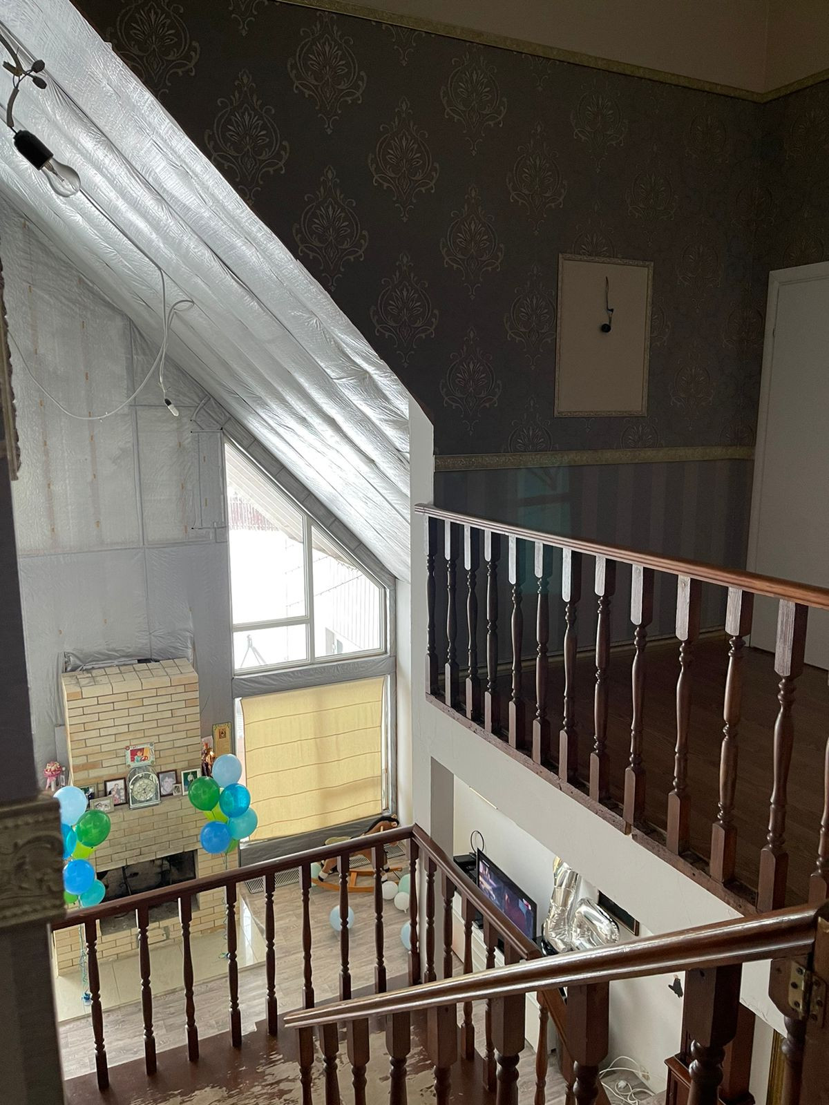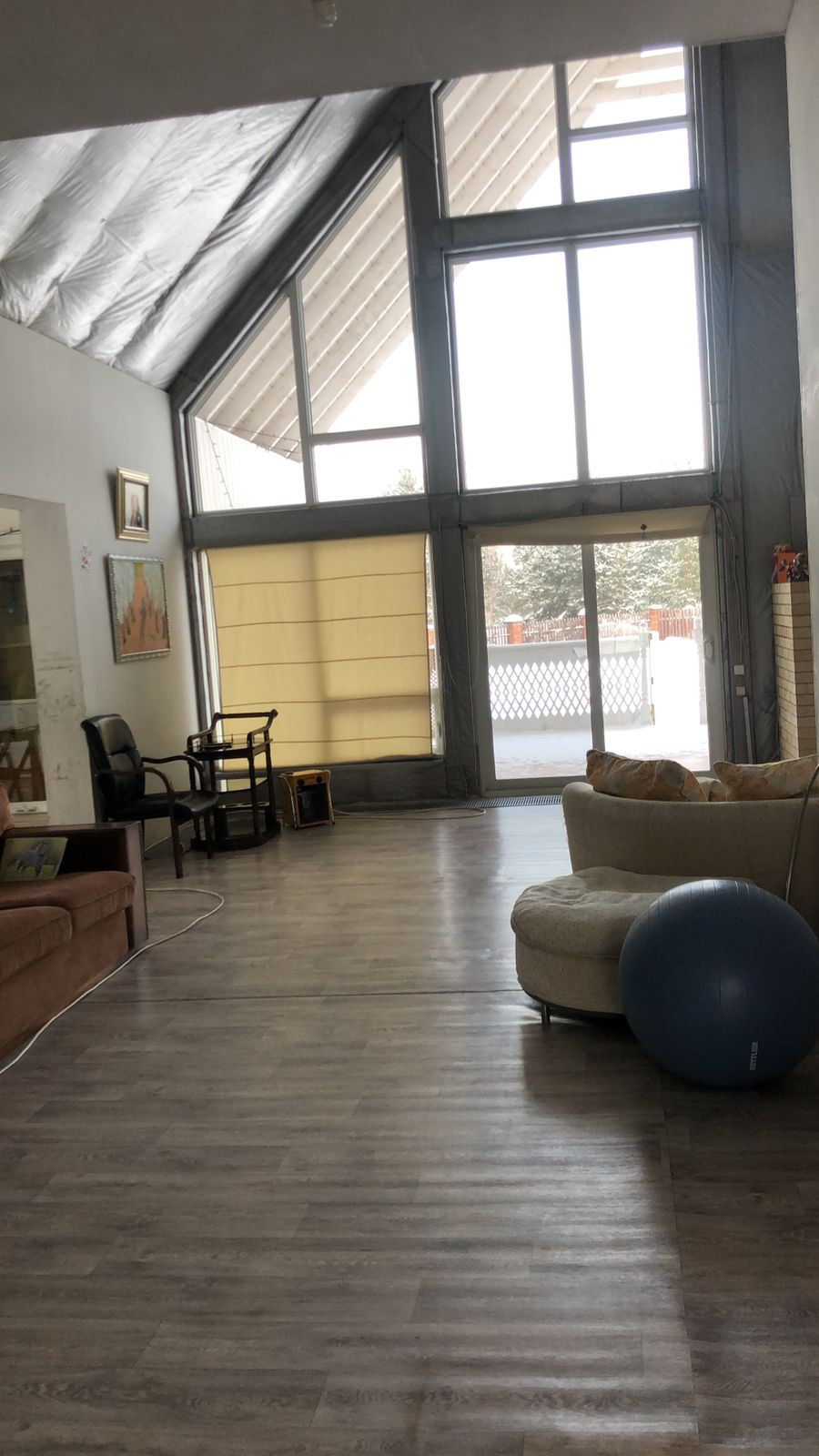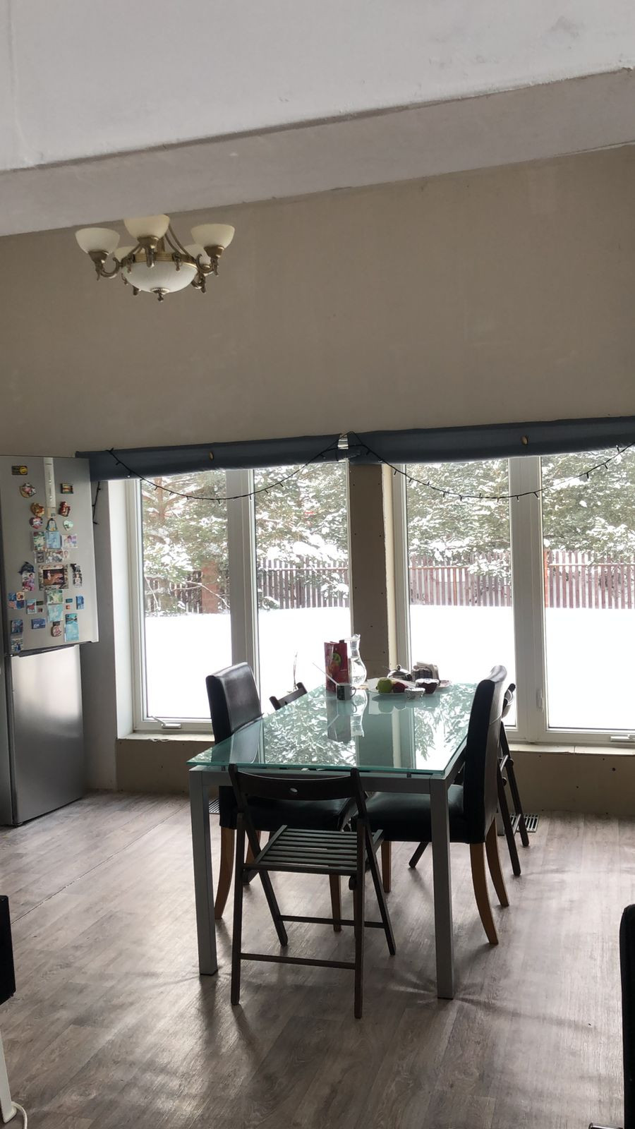 на 1ом этаже Витражные окна выход на барбекю свободное место и прекрасное для отдыха. Дом не достроен внутри до конца. есть свободные площади на 1ом этаже по своему усмотрению можно доделать комнатами.,баней, гаражом и тд. Можно в доме сделать и второй вход если нужно. всё для этого есть: 1ый Этаж ( Гостинная большая, столовая, санузел с душевой, 2-комнаты,огромная гардеробная, выход в гараж.