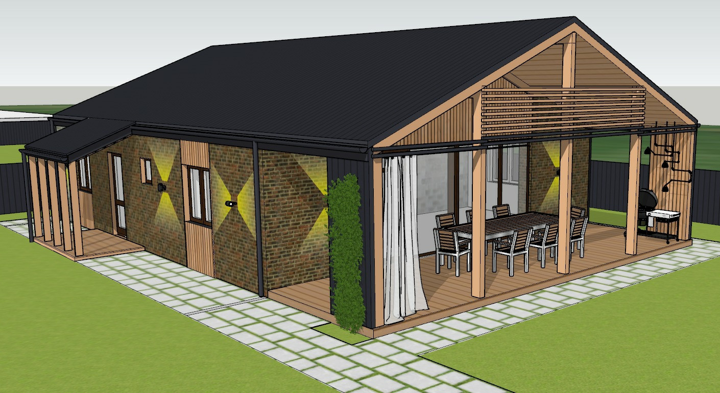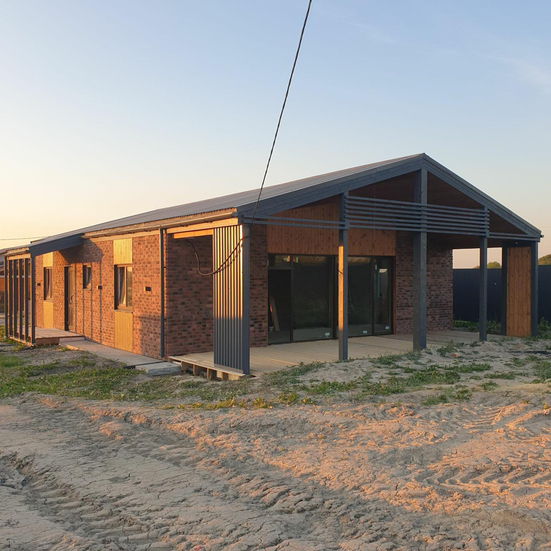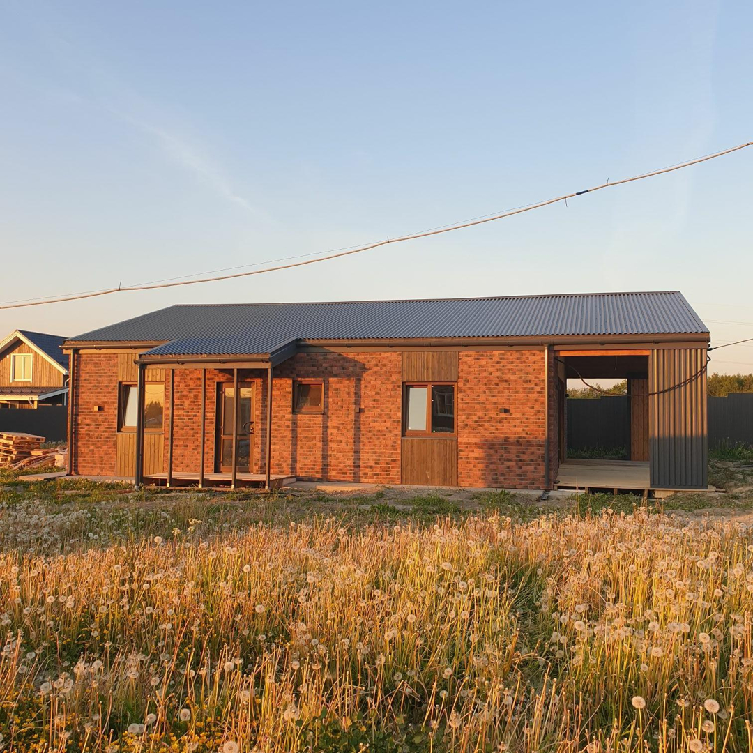 Дом в стиле БАРН- ХАУС на монолитной плите из газобетона.