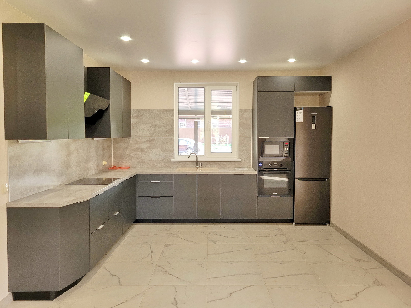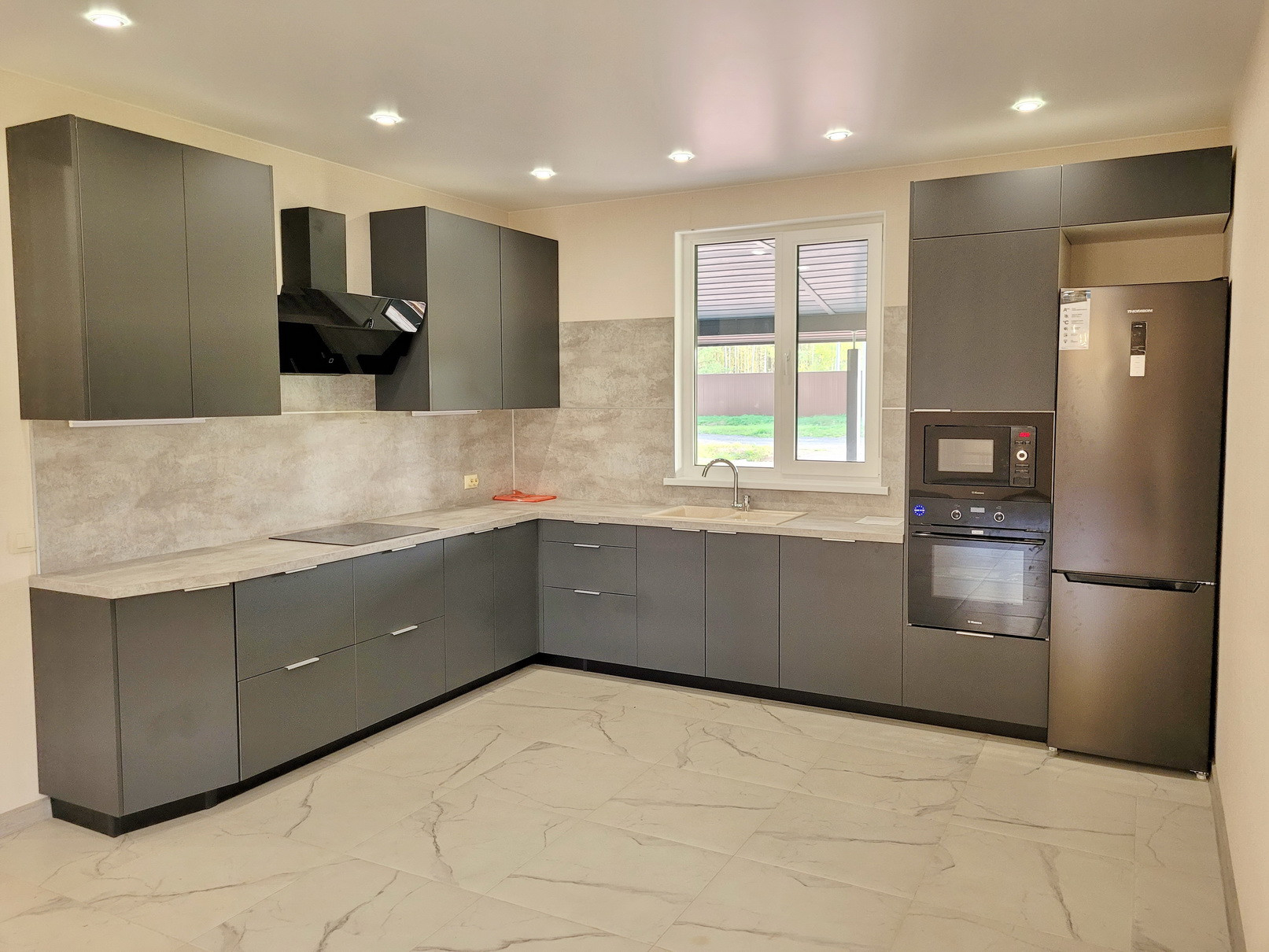 Кухня-гостиная 50кв.м с полной меблировкой: холодильник, духовой шкаф, СВЧ, эл. в прочная панель, большая посудомоечная машина, отличная вытяжка на 90см, мебель вся с доводчиками).