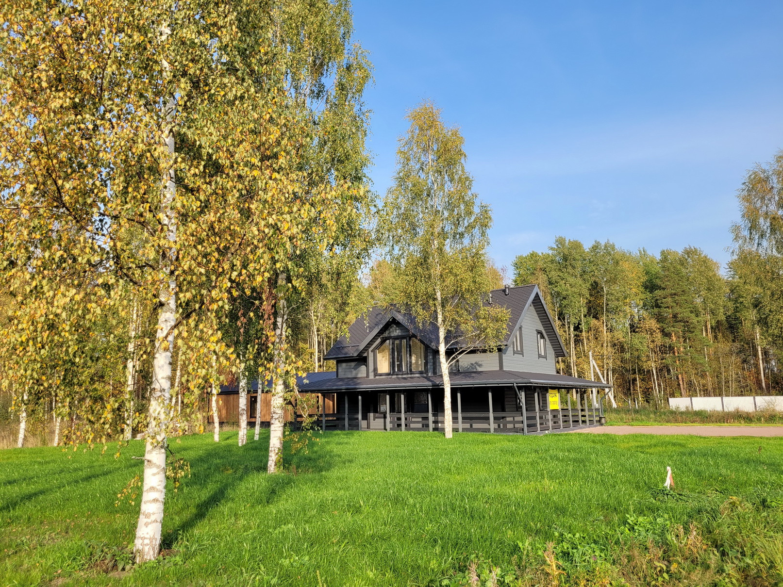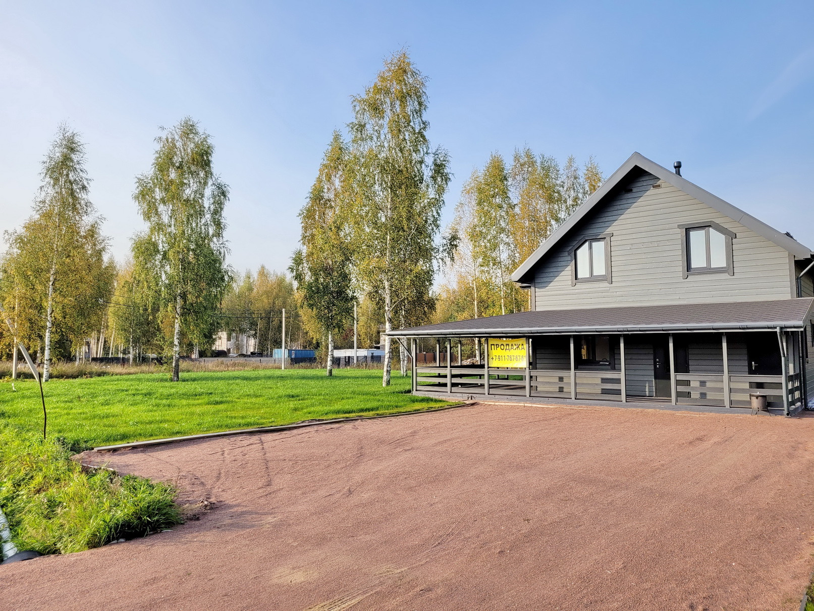 По участку проведена вся работа - Снят первый слой, отсыпан в уровень дороги, выровнен, завезен плодородный грунт и засеян газон;