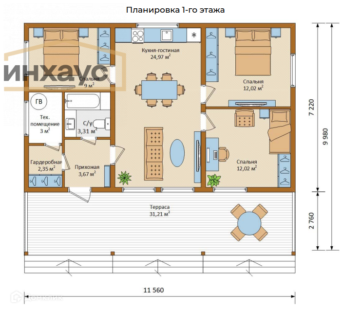 Общая площадь 115 м2