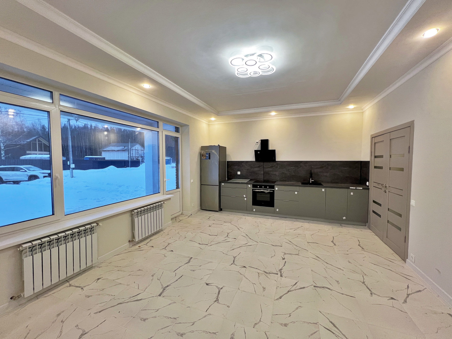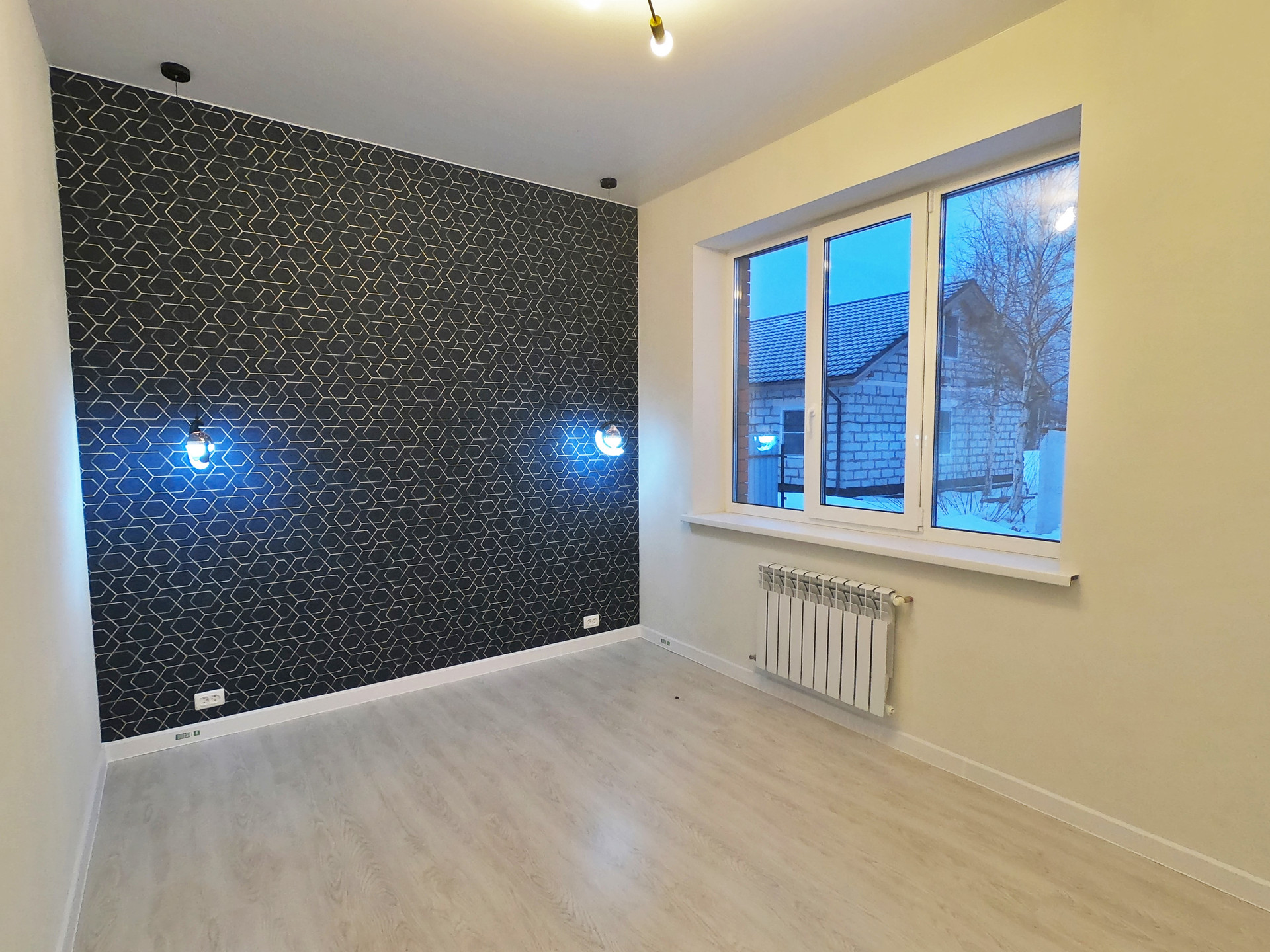 Поставлены стеклопакеты Rehau, сделан водяной тёплый пол, радиаторы с терморегуляторами