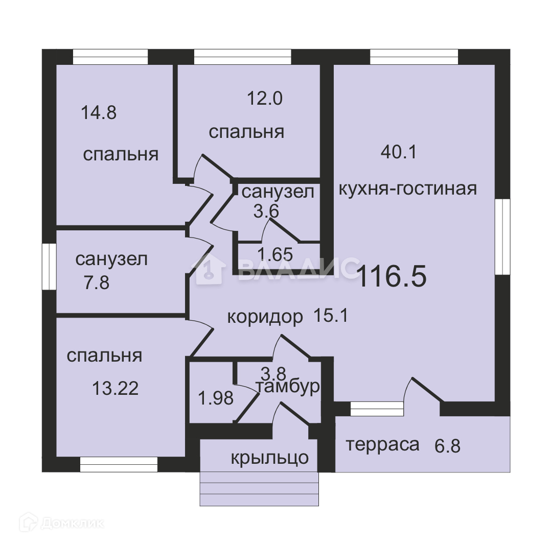 - 3 просторные спальни