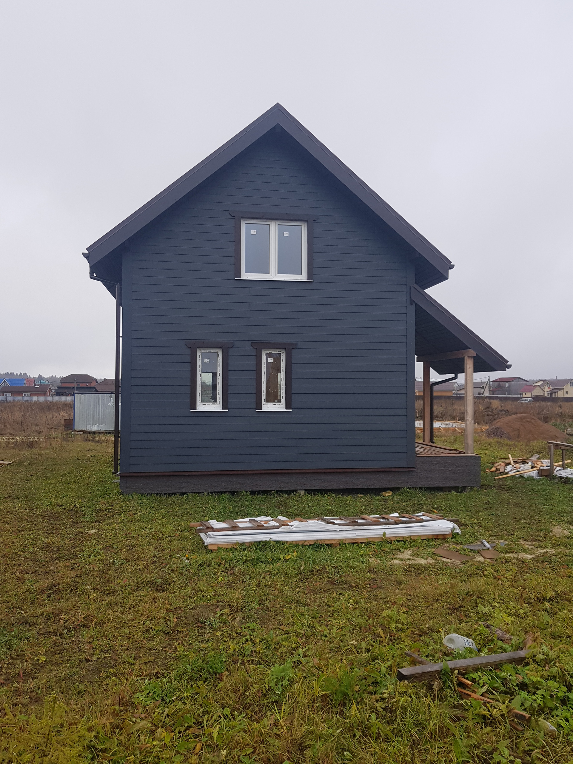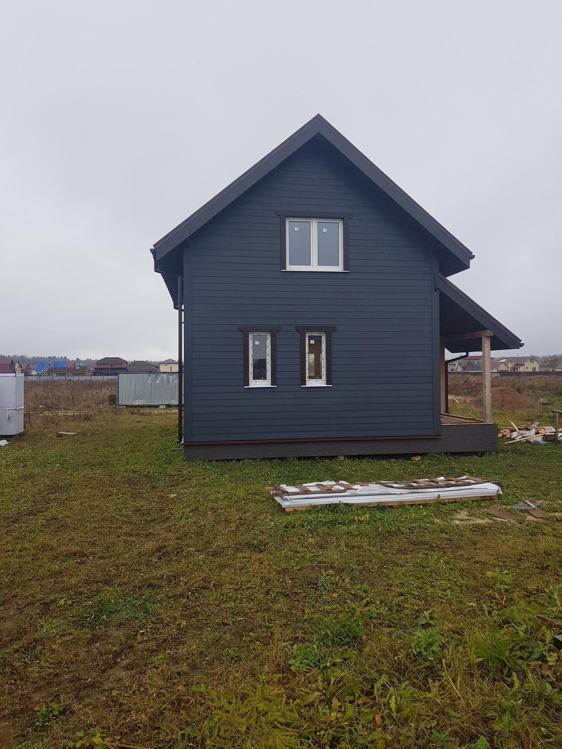 О доме: дом каркасный, вода из скважины , электричество  15кВт, обшит фиброцементым сайдингом эмитация дерева ,ветрозащитная плита 20мм, внутри отделка по согласованию, основание бетонные сваи 250,  толщина утеплителя: стены 150/50, пол 250,крыша 250. Участок 8 соток,возможно увелечение до 20, сухой,.Построен согласно снипам.Напрямую от застройщика.