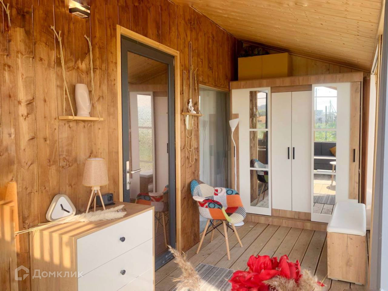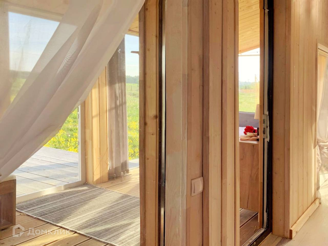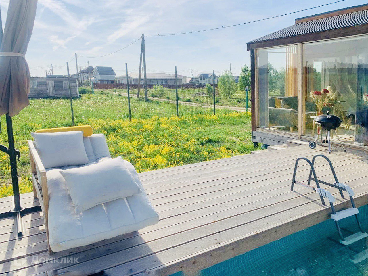 Для круглогодичного проживания-Каркасный, Утеплен, выполнено панорамное остекление-открывается шикарный вид на поле с лошадками и лес.