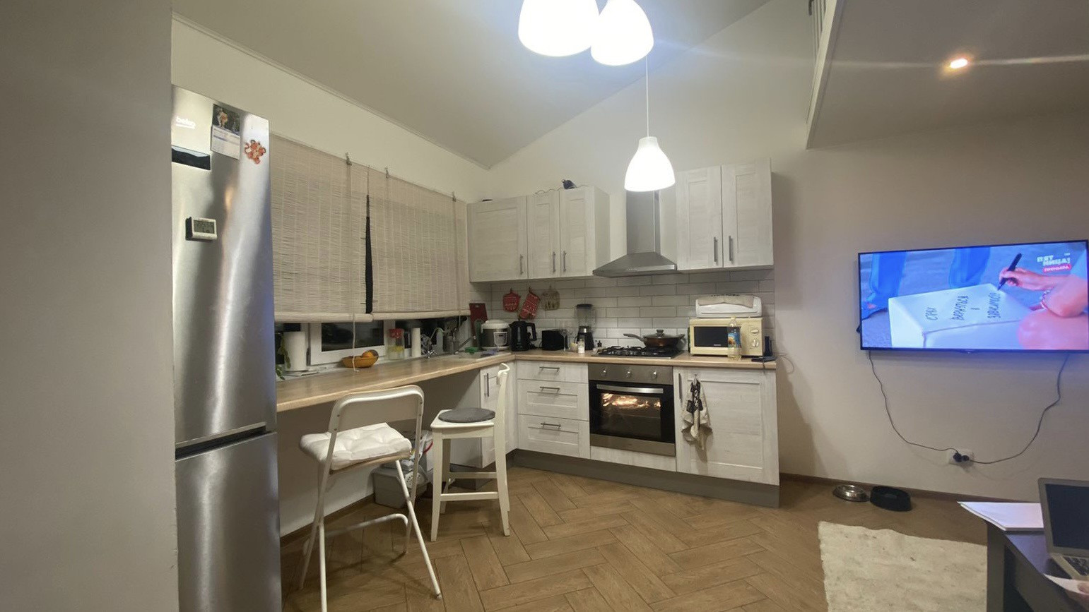 Одна часть полностью готова для проживания, в ней остаётся вся мебель. Вторая часть требует ремонта.