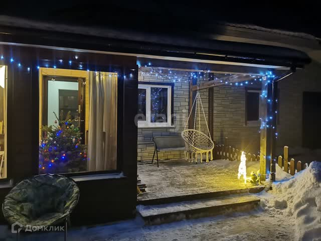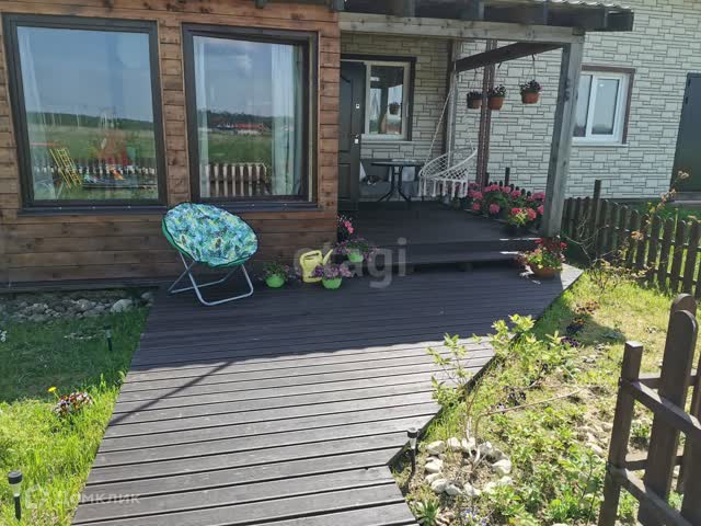 Пристроена веранда, остекленная с двух сторон, на винтовых сваях.