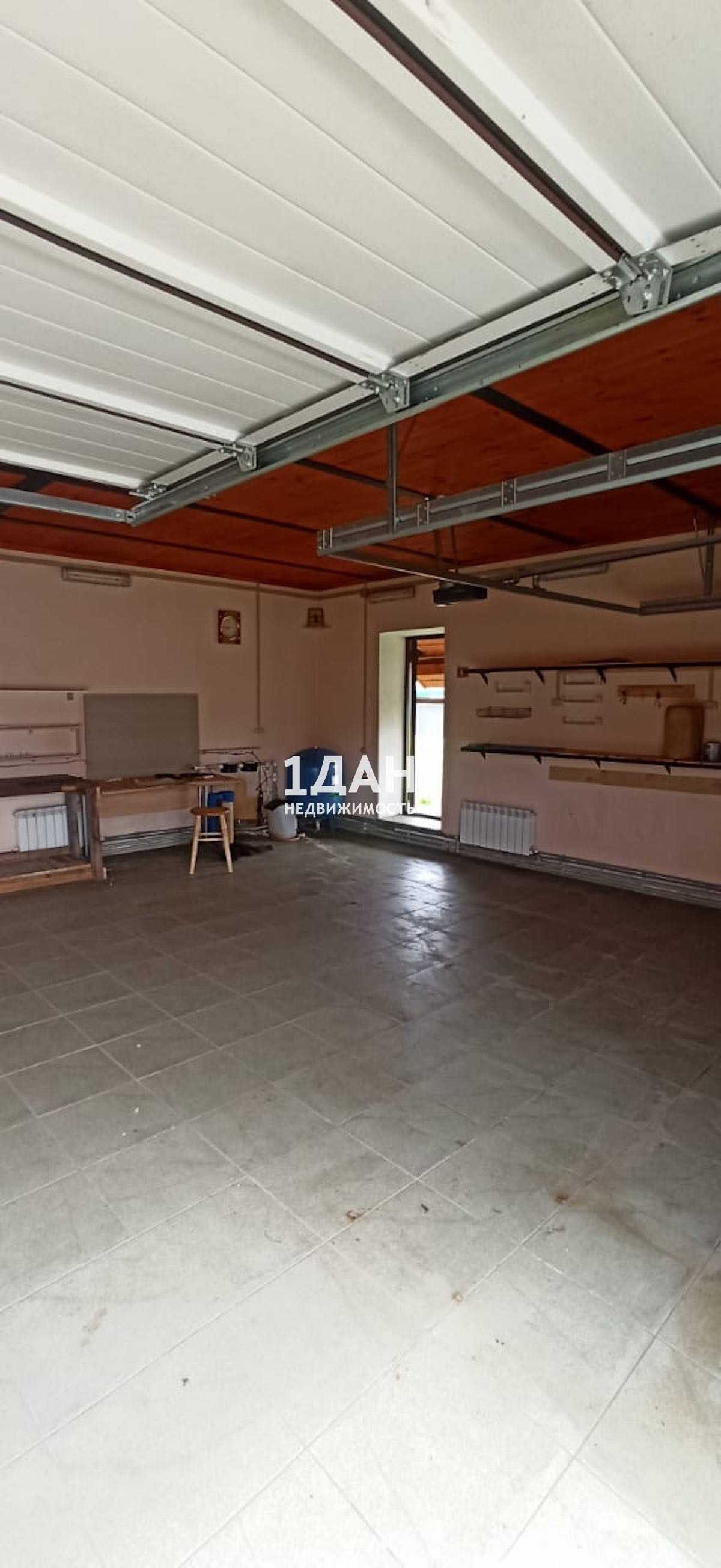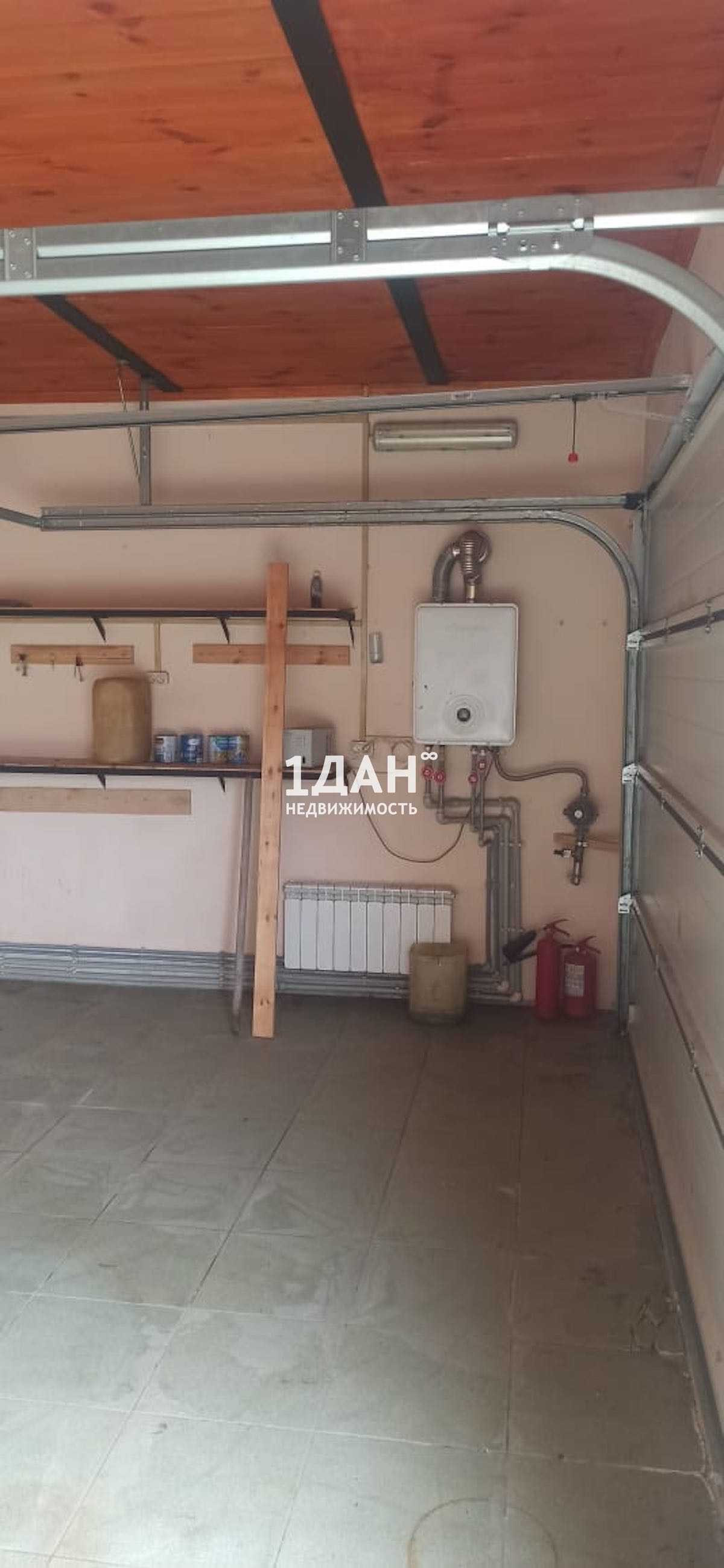 Гараж с полной внутренней (ГКЛ) и наружной (натуральный деревянный сайдинг) отделкой на 2 авто, размером 8*8м, пенобетон, со встроенными секционными гаражными воротами (DoorHan) дистанционного управления. Пол плитка (керамогранит), отопление (полипропилен), алюминиевые радиаторы, газовый котел (Zota), санузел 3м2 (унитаз, раковина)