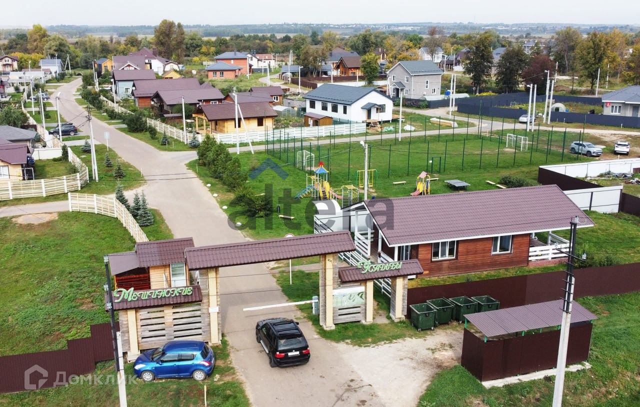 Котеджный поселок "Мешинские усадьбы" имеет закрытую территорию и свой КПП, магазин на территории поселка, а также крутую детскую площадку и  футбольную площадку .