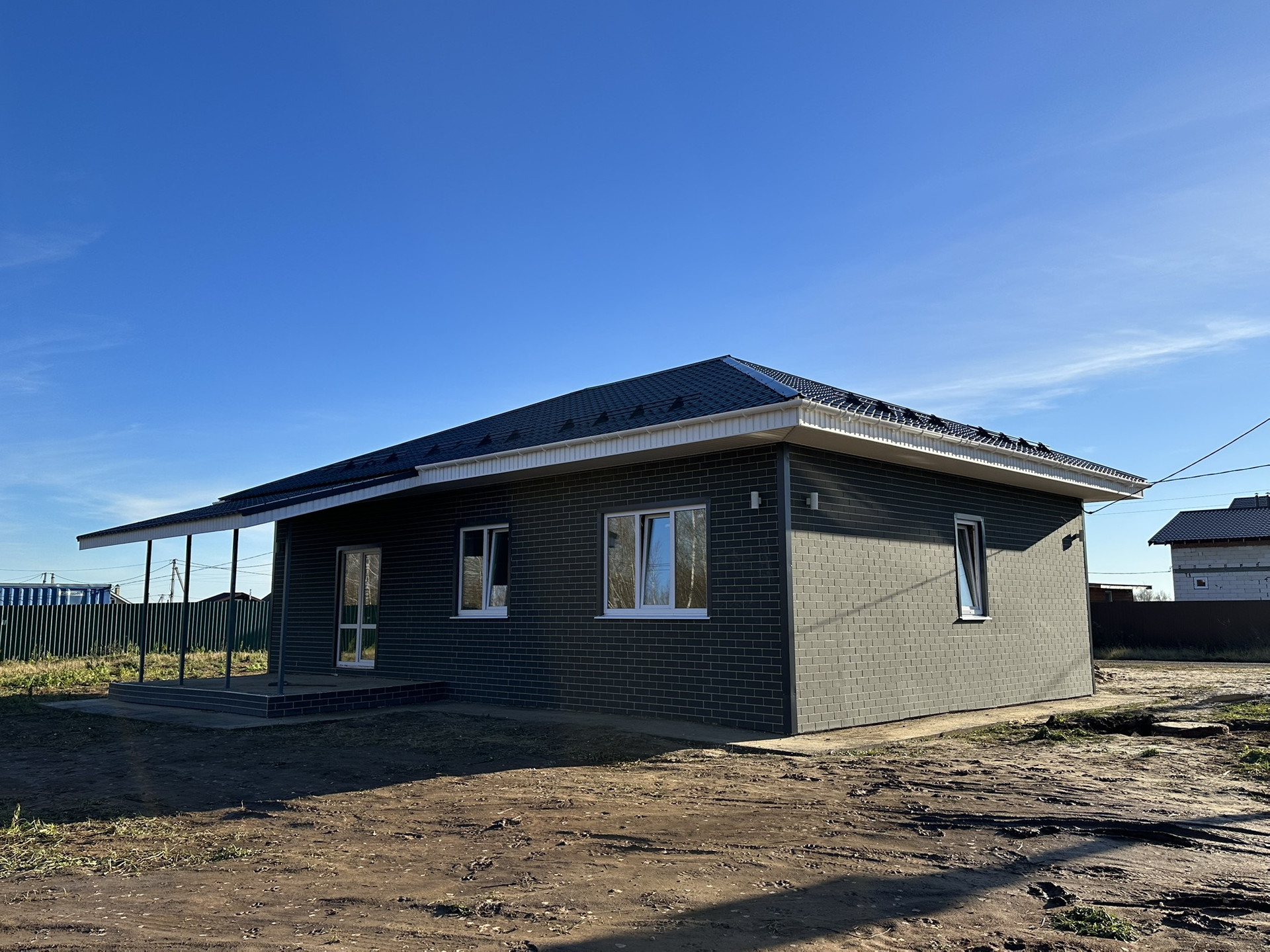 Дом 2023 года постройки, построен из арболитовых блоков, облицован термопанелями (сами живём в таком, дом очень теплый)